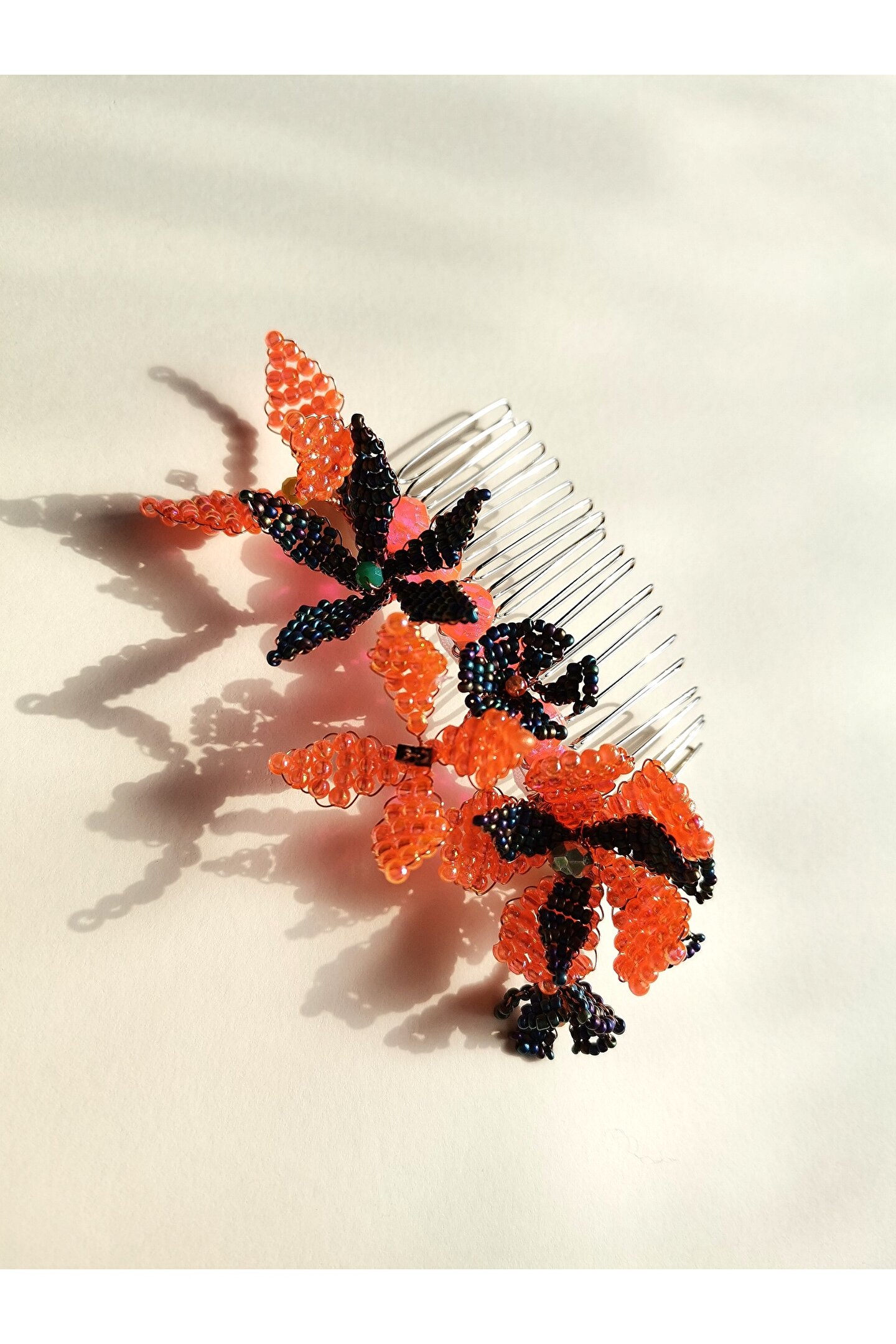 • Cam boncuklar ile hazırlanmış özel tasarım tarak toka.