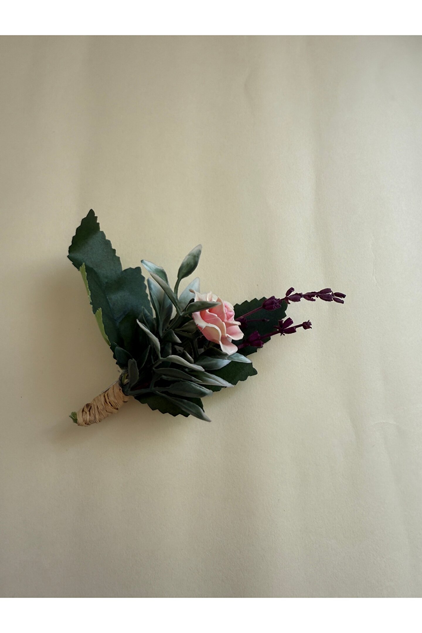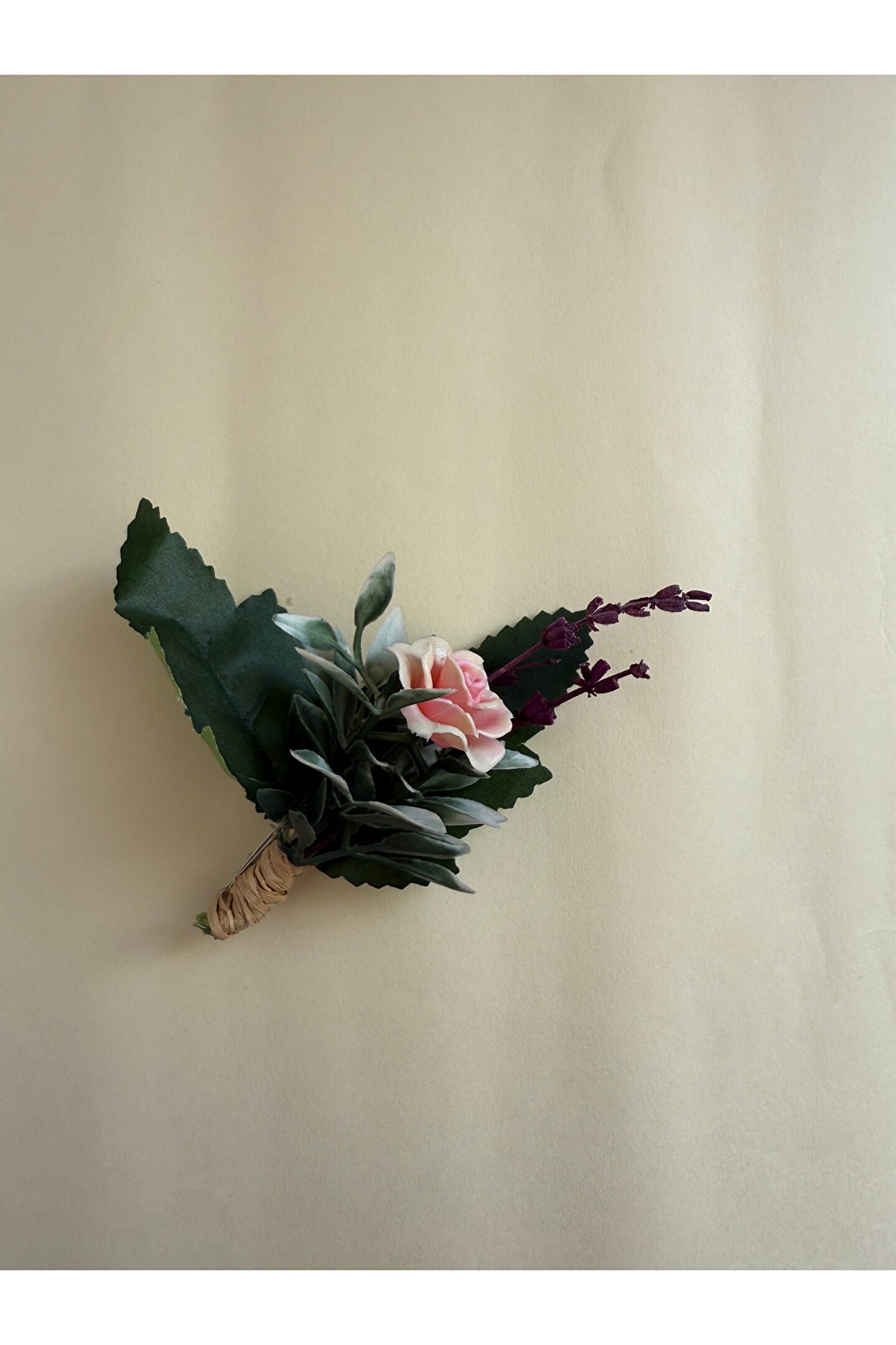 İthal kuru çiçekler ve yapay çiçekler ile hazırlanan özel tasarım damat yaka çiçeği
