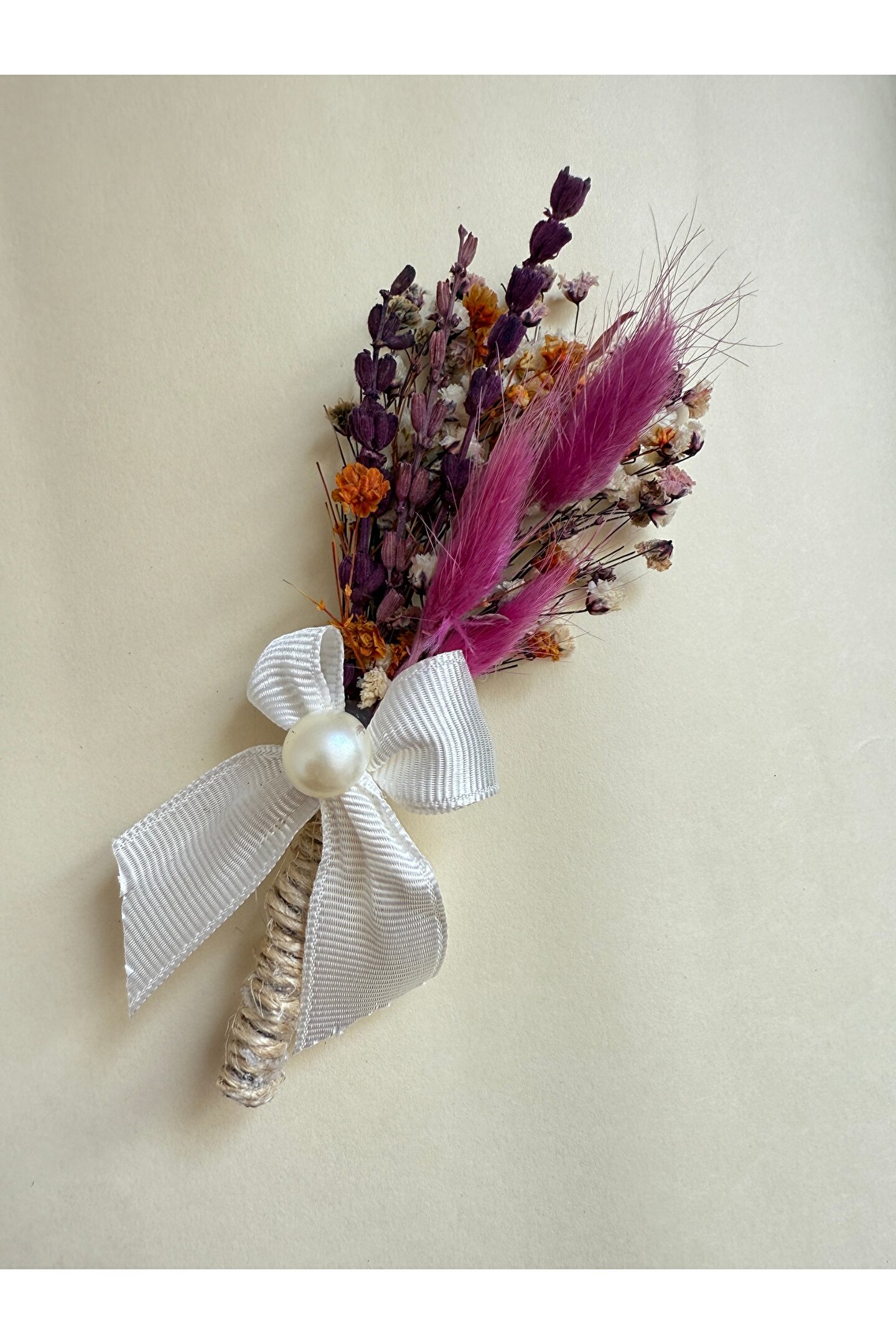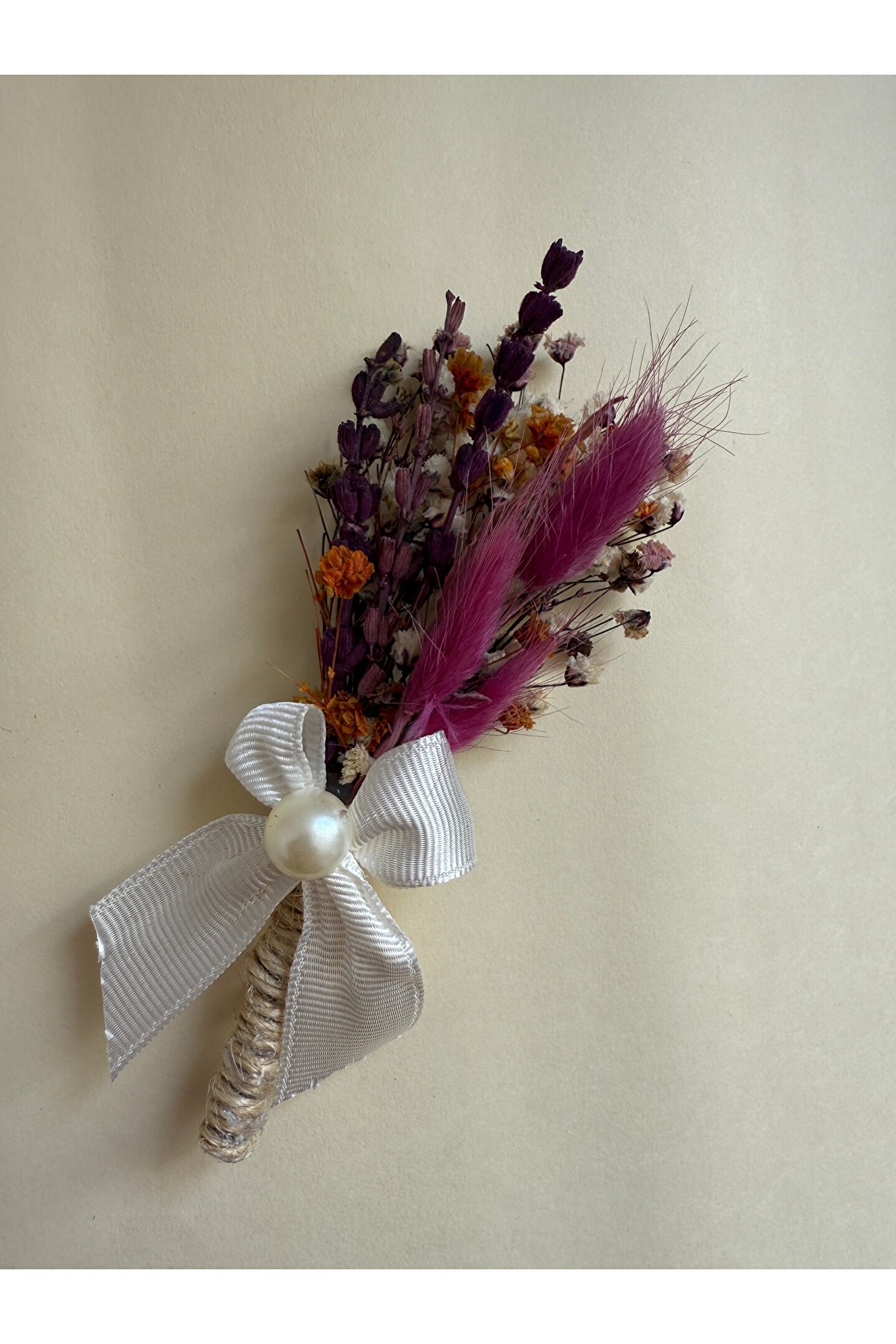 İthal kuru çiçekler ve yapay çiçekler ile hazırlanan özel tasarım damat yaka çiçeği