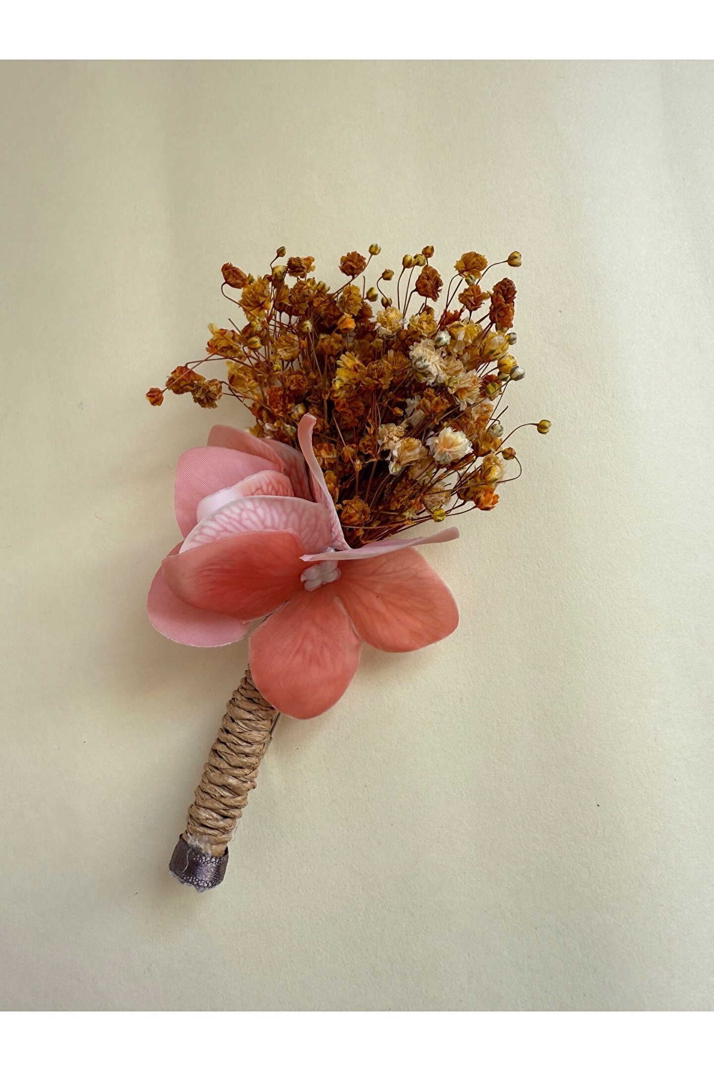 İthal kuru çiçekler ve yapay çiçekler ile hazırlanan özel tasarım damat yaka çiçeği
