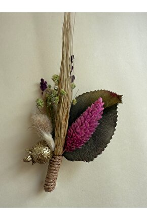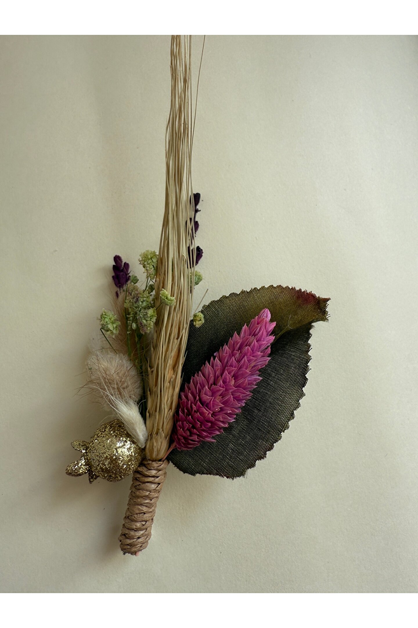 kuru çiçekler ve yapay çiçekler ile hazırlanan özel tasarım damat yaka çiçeği