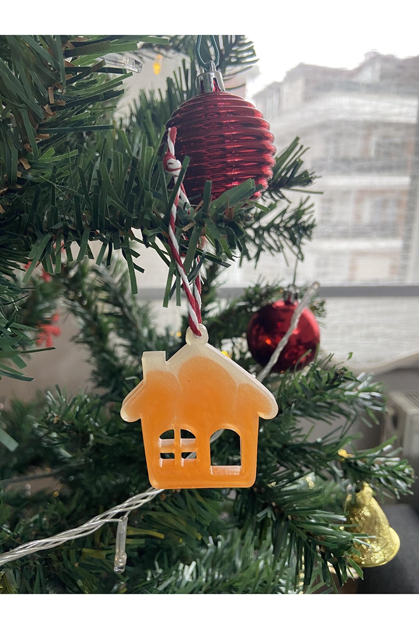 Ev formunda hazırlanan özel tasarım el emeği epoksi yılbaşı ağacı süsü.