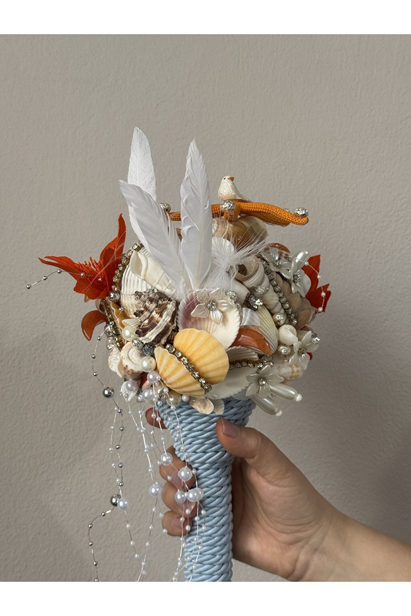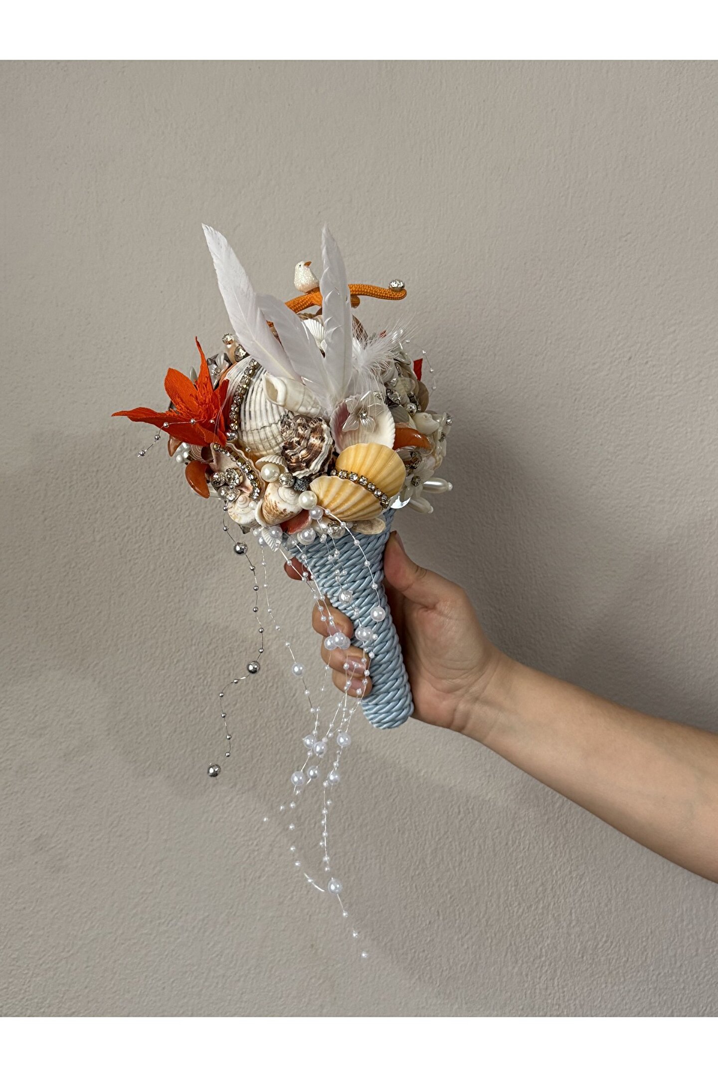 Sıradan çiçek buketlerinin ötesine geçen bu özel tasarım, Bivalvia Accessories imzası taşıyan bir ikon parça. Tamamen el yapımı olan bu gelin buketi; deniz kabukları, doğal taşlar, inciler ve zarif boncuklarla tek tek işlenerek hazırlandı. Her detayında denizin ruhunu ve zarafetini taşıyan bu buket, sadece bir adet üretildi.