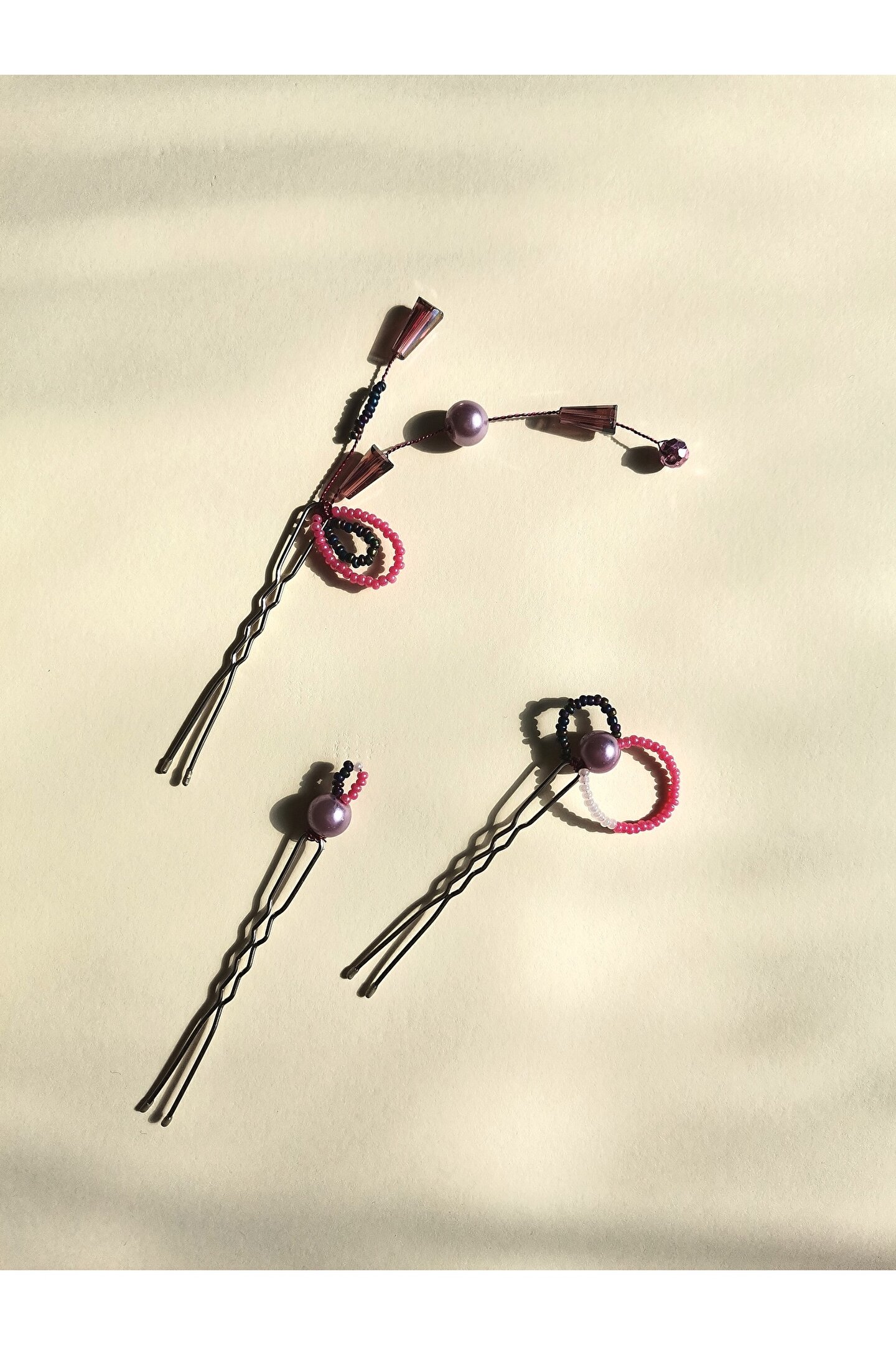 • Kum boncuk ve kristal boncuklar ile hazırlanmış özel tasarım firkete toka.