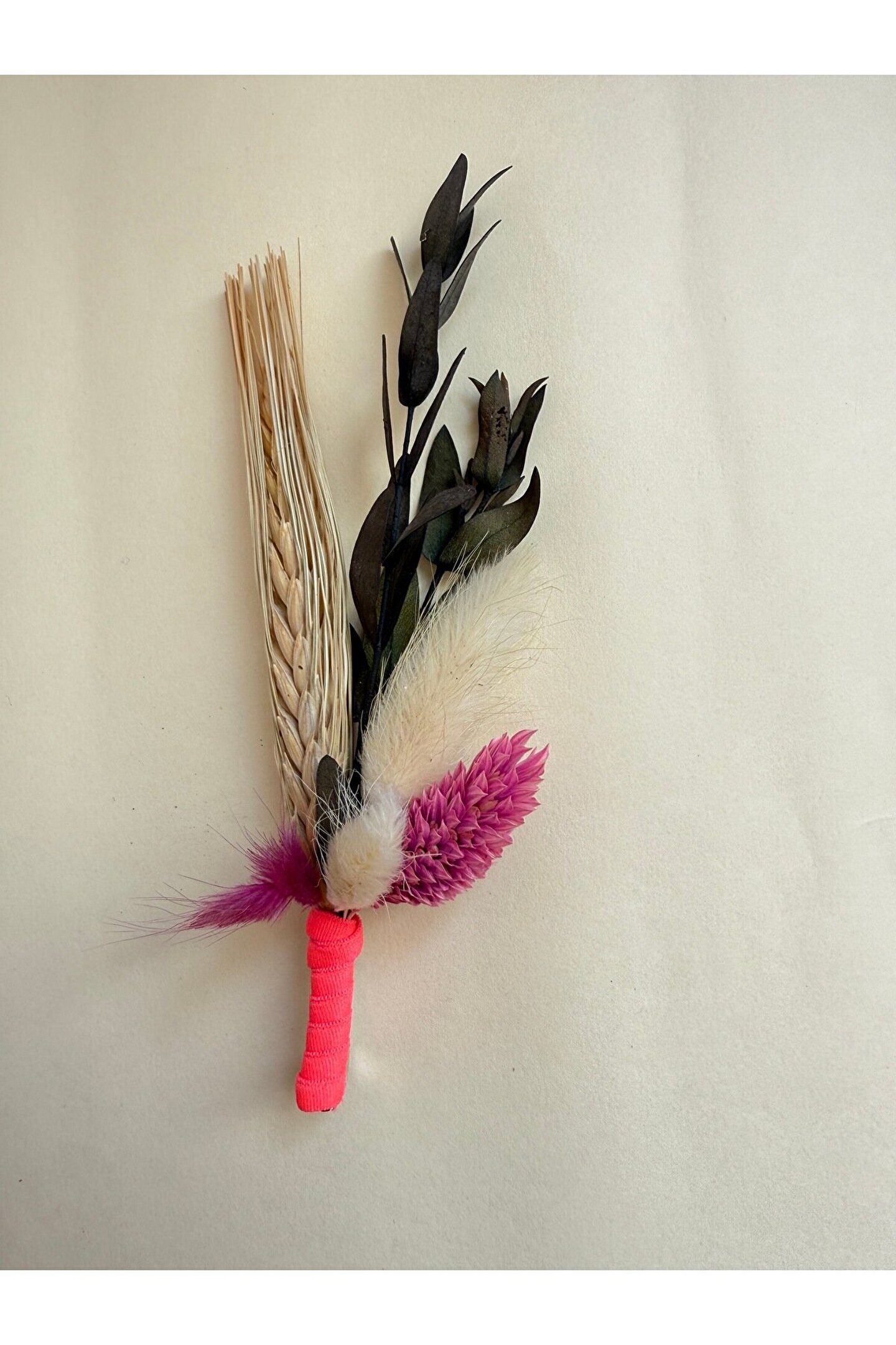 İthal kuru çiçek ve yapay çiçekler ile hazırlanan özel tasarım damat yaka çiçeği