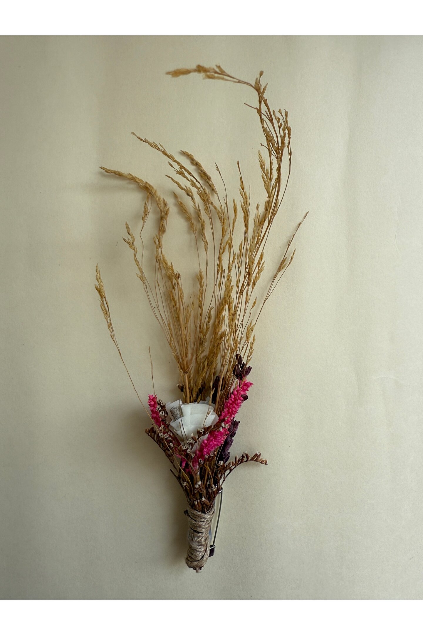 İthal kuru çiçekler ve yapay çiçekler ile hazırlanan özel tasarım damat yaka çiçeği