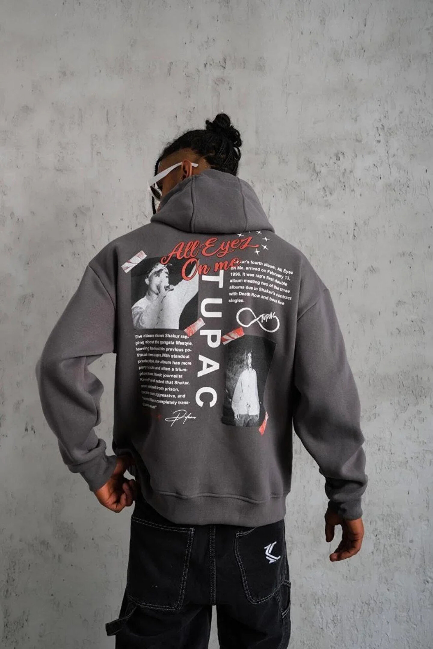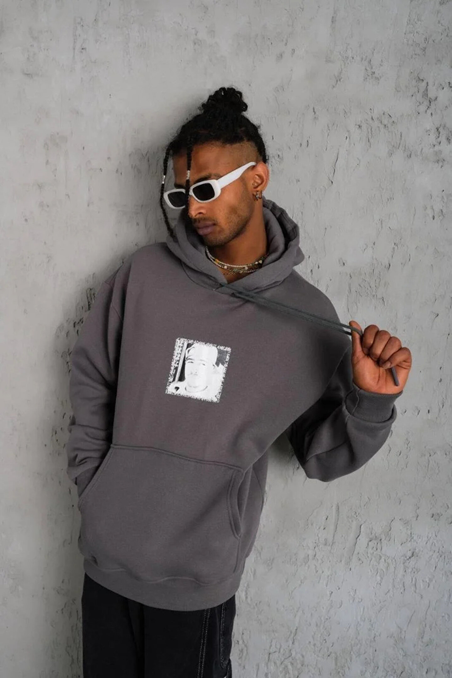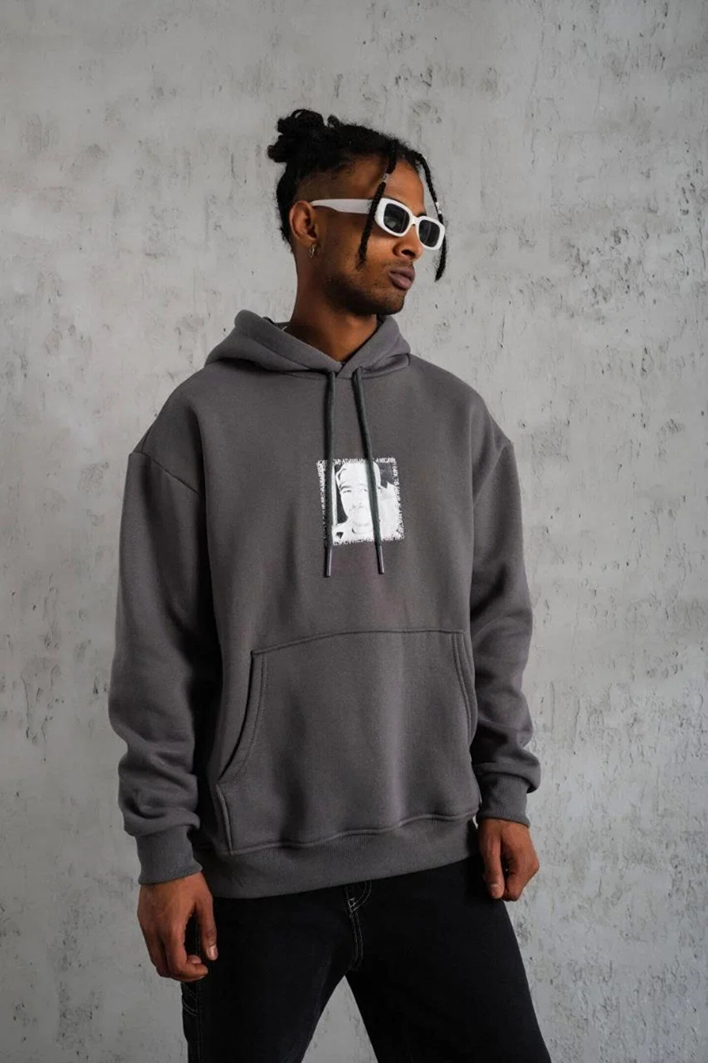 BLACK MODBLACK Erkek Ön Arka Baskılı Kapşonlu Sweat - Gri