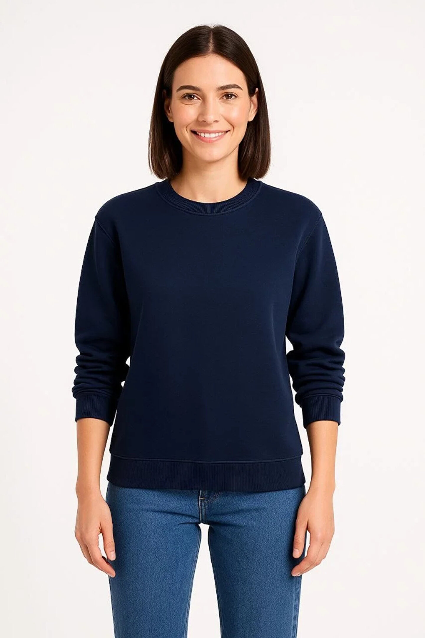 BLACK MODBLACK Kadın Üç İplik Düz Bisiklet Yaka SweatShirt - Lacivert