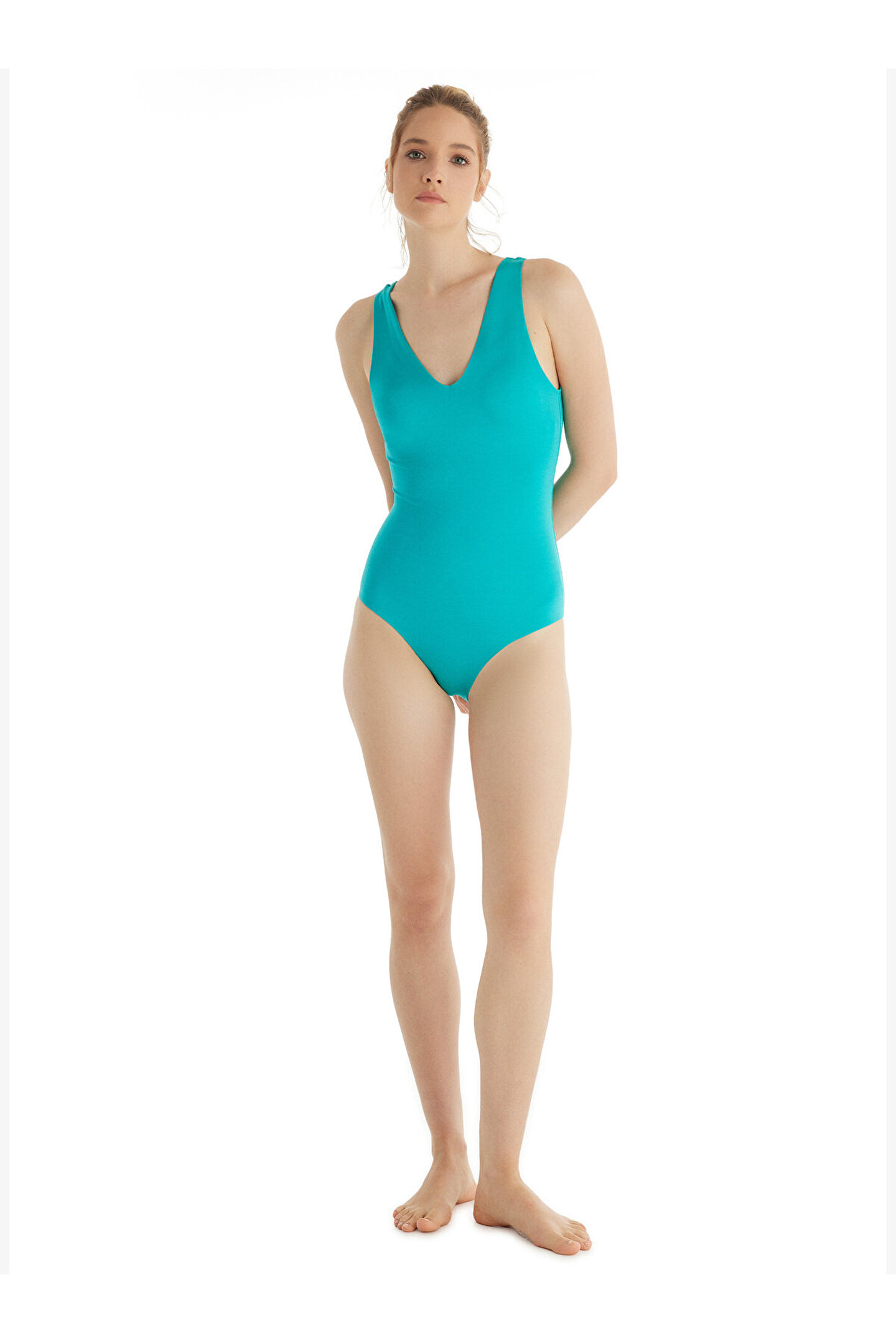 Yeni sezon Kadın Mayo 10719, şıklık ve konforu bir arada sunarak plajda stilinizi öne çıkarır. Askılı mayo tasarımı ve V yaka modali ile konforlu bir kullanım sunarken aynı zamanda derin sırt dekoltesi ile eşsiz stilinizi ön plana çıkarır. Göğüs kısmındaki ince (soft) ped yapısı, ekstra rahatlık ve destek sunarken, vücudu zarif bir şekilde sarar. Kaliteli kumaşlar ile tasarlanmış bu mayo, her bedende mükemmel uyum sağlar ve plajda özgürce hareket etmenizi sağlar.