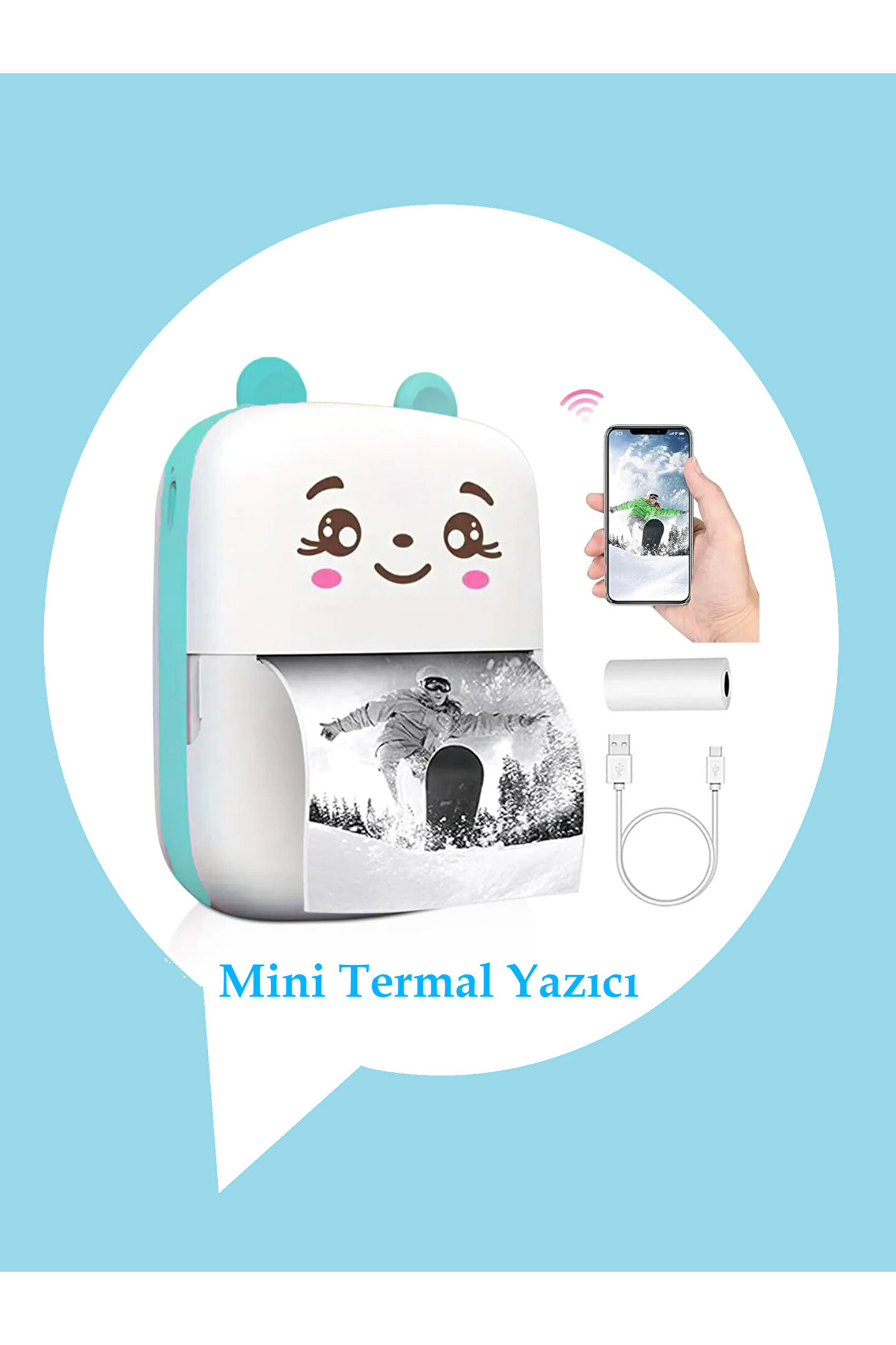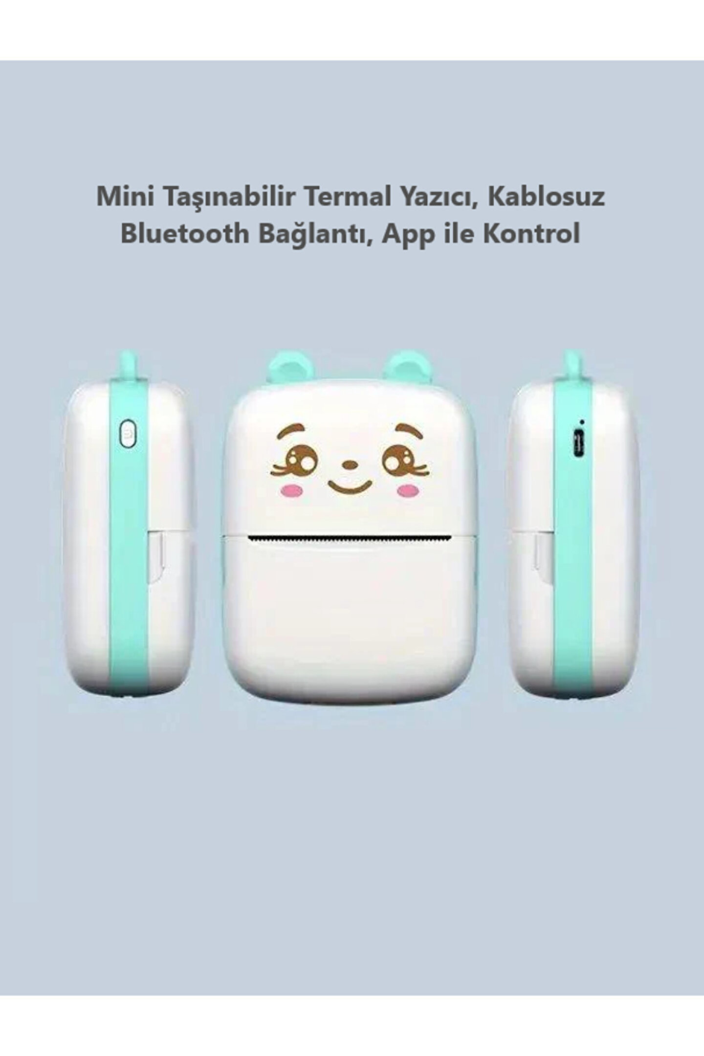 BLUE İNTER Mini Yazıcı Mini Taşınabilir Termal Yazıcı Kablosuz Bağlantı Ap Kontrol Mavi