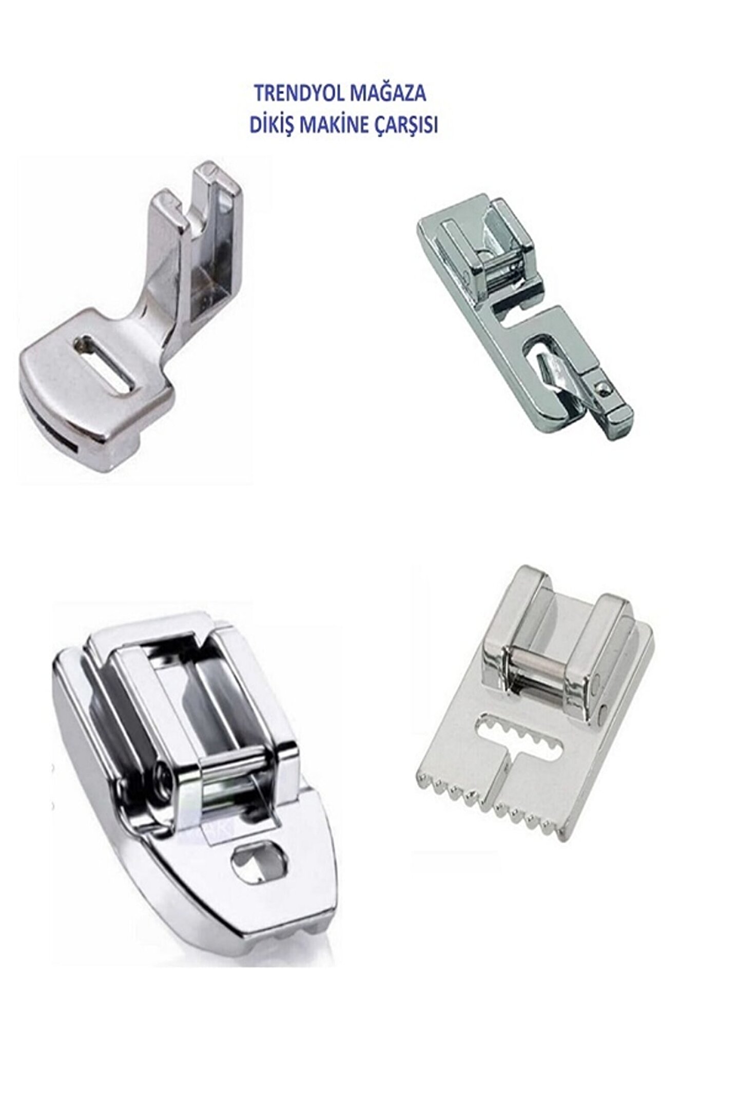 ÜRÜN DİKİŞ MAKİNE ÇARŞISI ORİJİNAL ÜRÜNÜDÜR.. ; SİNGER BEKO ZETİNA BINDALLI JANOME HOMEMAX SINBO BROTHER JUKI DİAMOND GİBİ TÜM YENİ MAKİNELER İÇİN DÖRTLÜ AYAK SETİ AYAK SETİNDE (GİZLİ FERMUAR AYAK, KIVIRMA AYAK, BÜZGÜ, NERVÜR AYAK ) 4 ADET AYAK MEVCUTTUR... ; TÜM DİKİŞ MAKİNELERİNDE RAHATÇA KULLANABİLİRSİNİZ.;