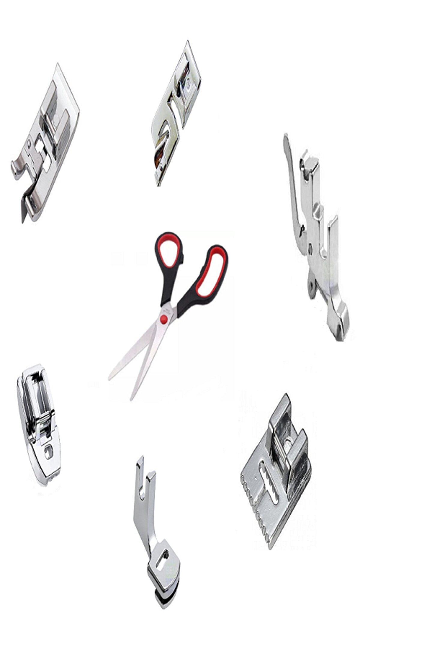 DİKİŞ MAKİNE AYAK SETİ (KIVIRMA-BÜZGÜ-NERVÜR-SÜRFİLE - GİZLİ FERMUAR AYAK VE TAŞIYICI YANİ AYAK TUTUCU BERABER) ALTILI AYAK SETİ VE BİR ADET EVLERDE KULLANILAN KALİTELİ MAKAS TÜM ZİGZAG DİKİŞ MAKİLERİ İLE UYUMLUDUR. ; SİNGER BEKO ZETİNA BERNİNA HOMEMAX BROTHER SİNBO DİAMOND BİNDALLI GİBİ TÜZ MAKİNELERDE UYUM GÖSTERİR AYAK TOPLAM SET HALİNDE 6 ÇEŞİT PARÇA İLE GELECEKTİR. ; ÜRÜNÜMÜZ İÇİNDEN MUTLAKA MAKAS HEDİYESİ ÇIKMAKTADIR MAKAS HEDİYELİDİR ürünler orijinal yeni tip tüm makinelerle uyumludur.;