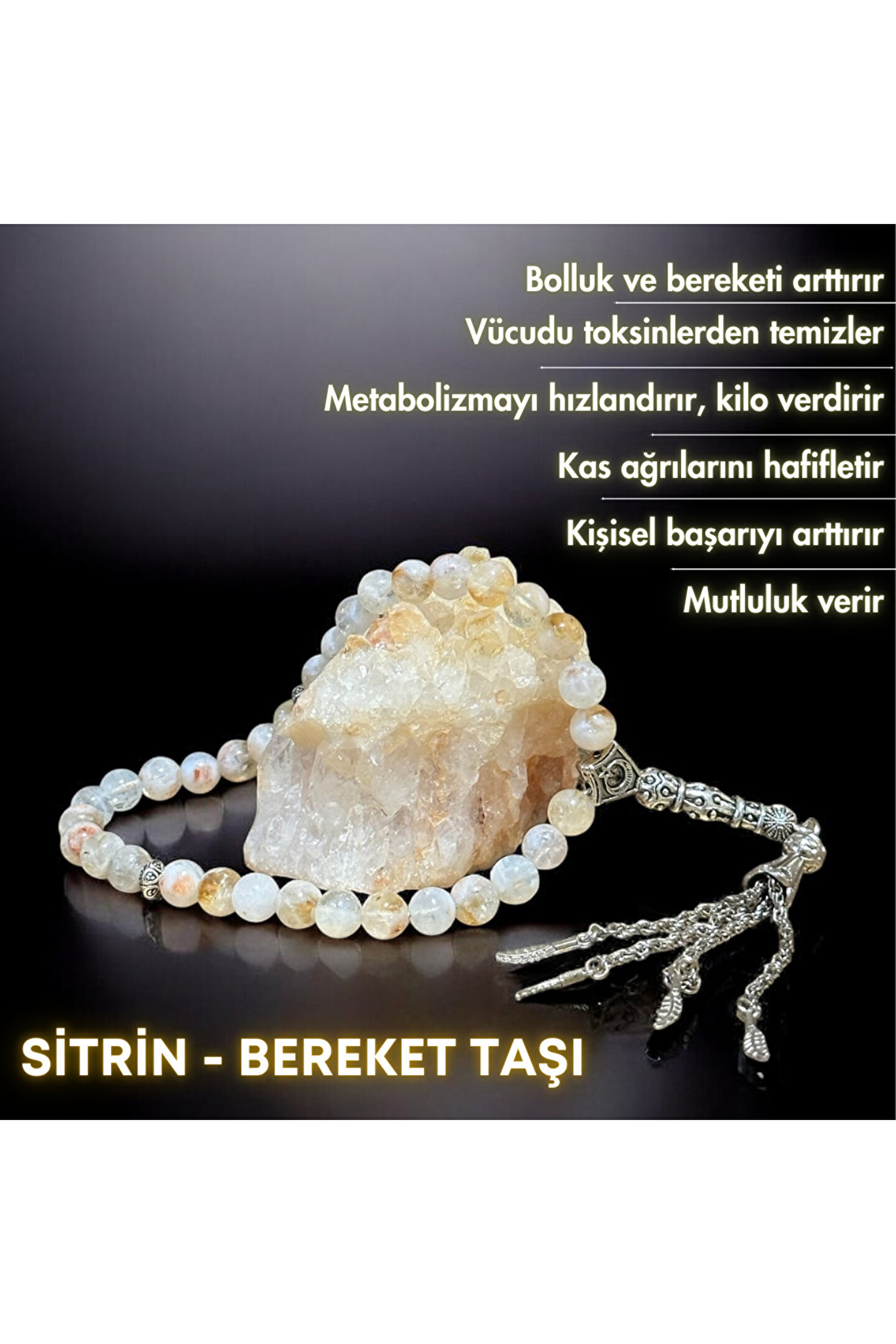 Bonicce Bereket Tesbihi - Sitrin Taşı Gerçek Doğal Taş Tesbih