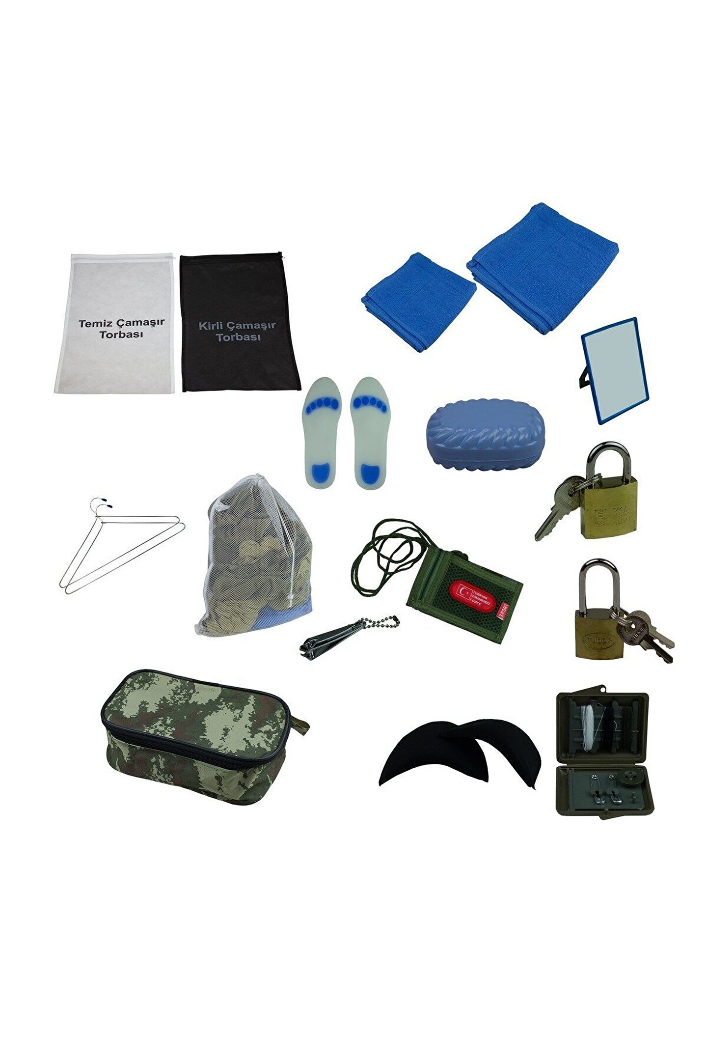 ACEMİ VE BEDELLİ ASKER MALZEMESİ 18 PARÇA SET 18 PARÇA SET ASKERLER İÇİN SET KİRLİ TORBA TEMİZ TORBA ÇAMAŞIR FİLESİ BOT KİLİDİ ÇANTA KİLİDİ 2 ADET VATKA İPLİ CÜZDAN TIRNAK MAKASI 2 ADET ASKI TABANLIK TRAŞ ÇANTASI DİKİŞ SETİ SABUNLUK AYNA EL-YÜZ HAVLU BANYO HAVLU