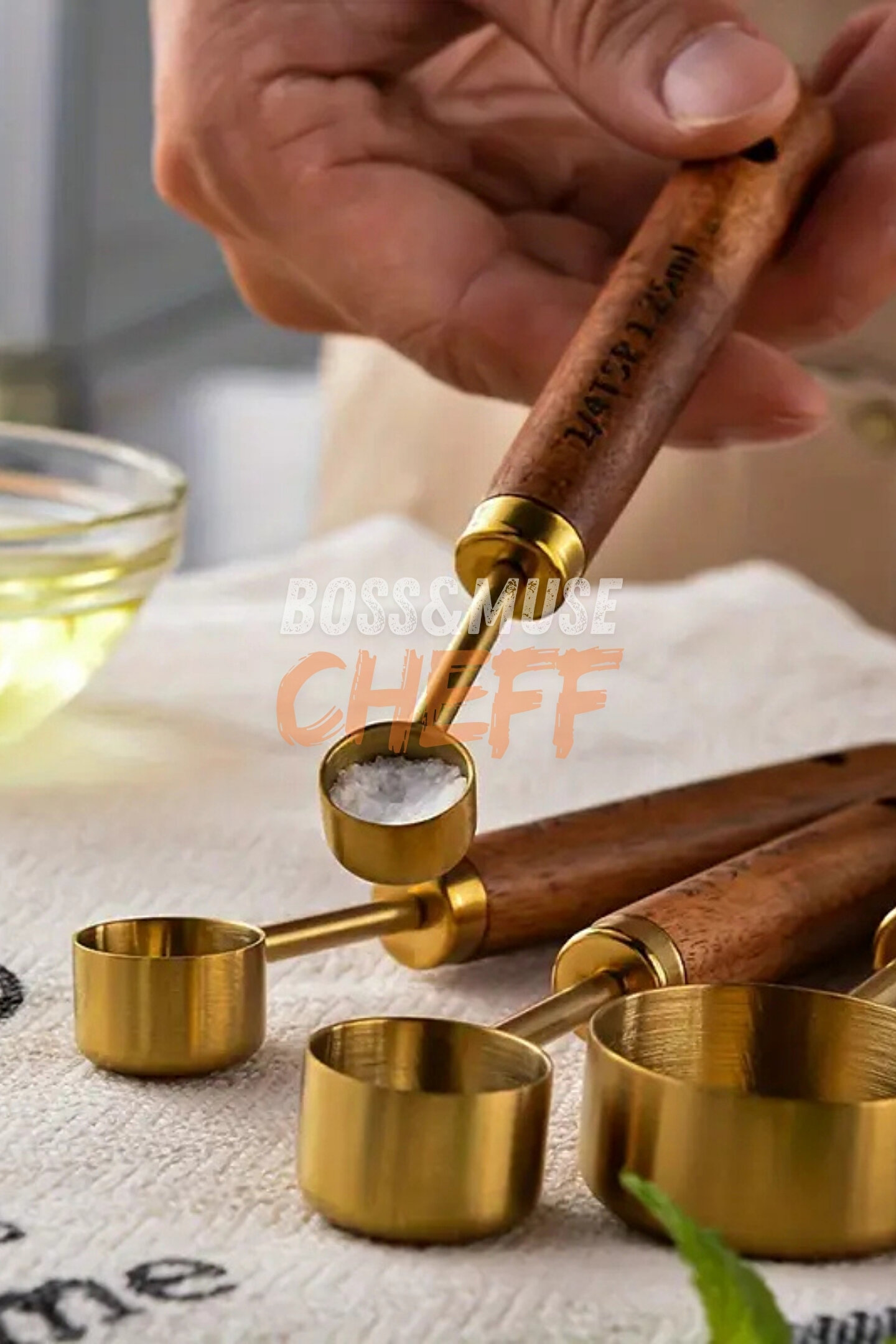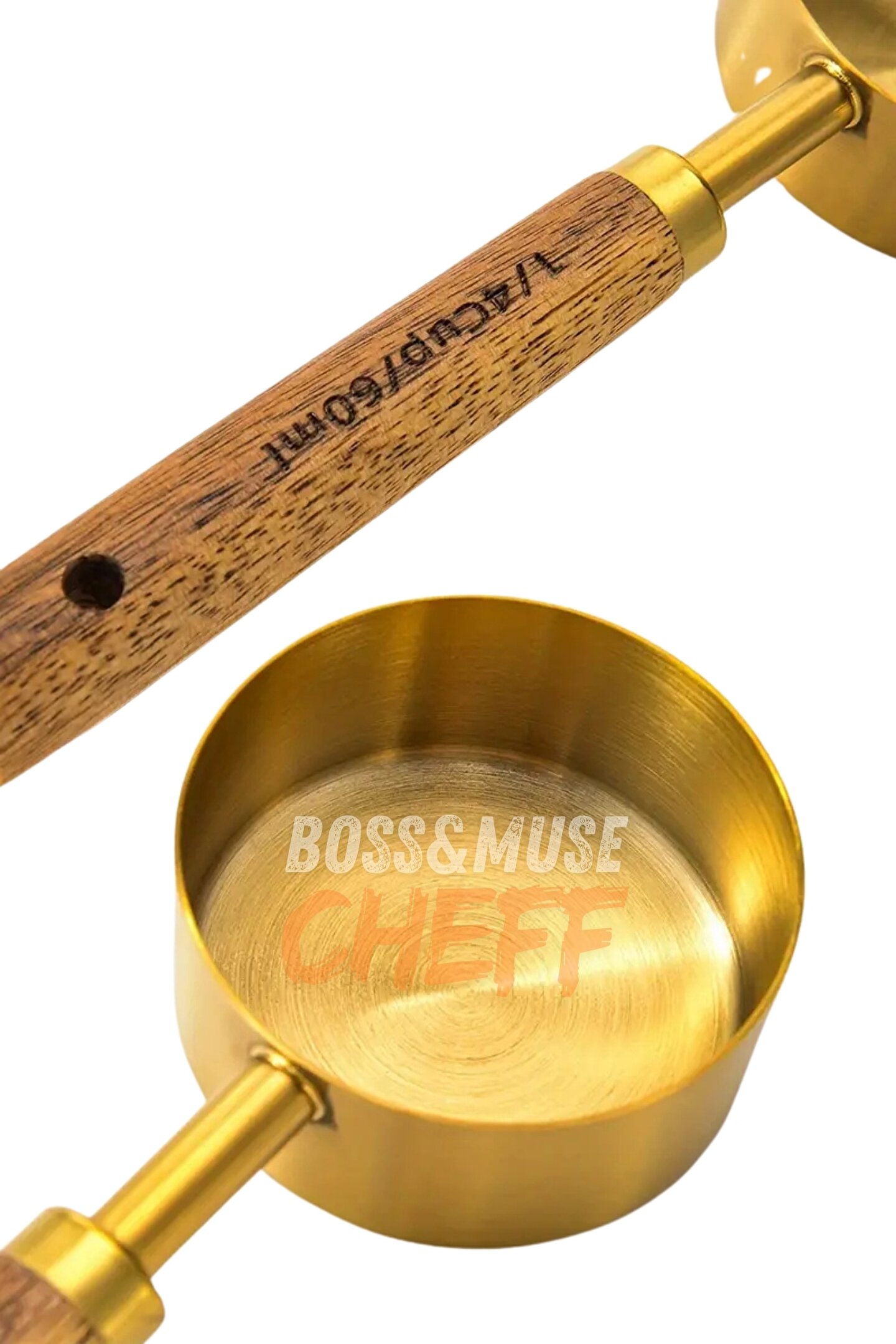 bossandmuse 4 Adet Büyük Boy Paslanmaz Çelik Ahşap Saplı Ölçü Kaşığı Seti Ölçü Kabı Hediyeli