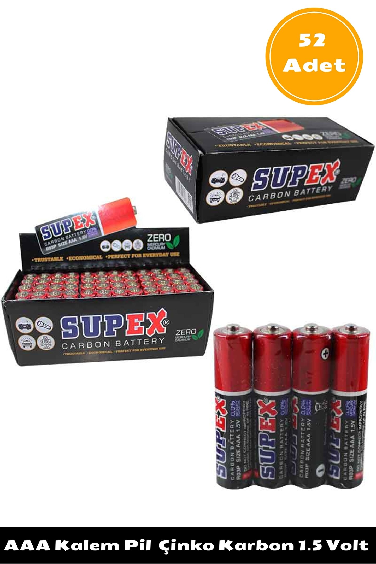 Tanım : İnce Kalem Pil / Kumanda Pili Kimyası : Çinko Karbon Gerilim Voltajı : 1.5 Volt Pil Boyu : AAA Şarj edilmez, Tek kullanımlıktır.; Çevre dostu Kaliteli, Uzun ömürlü kullanım