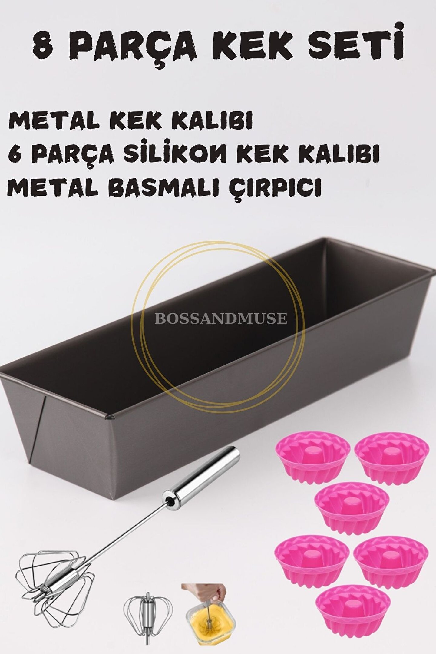 bossandmuse 8 Parça Pasta Seti Metal Kek Kalıbı 6lı Mufin Silikon Kek Kalıbı Yumurta Çırpıcı