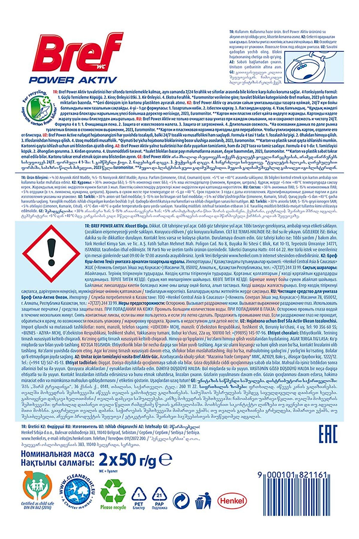 BREF Power Aktiv Katı Tuvalet Bloğu 5 Adet Okyanus Ikili (5Lİ SET)