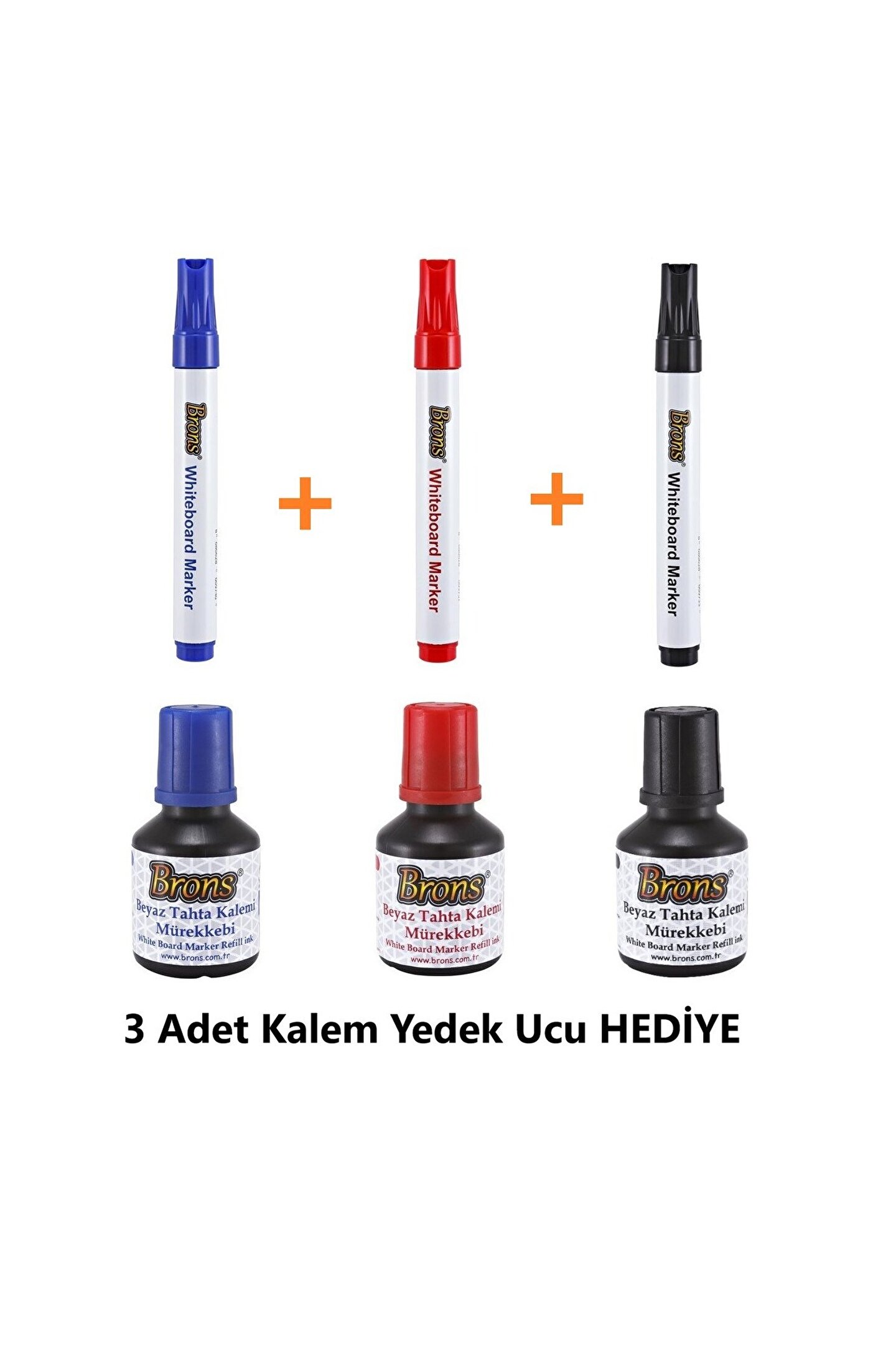 Brons 3lü Doldurulabilir Tahta Kalem Seti - 3 Tahta Kalemi - 30ml 3 Renk Mürekkep ve Yedek Kalem Uçları