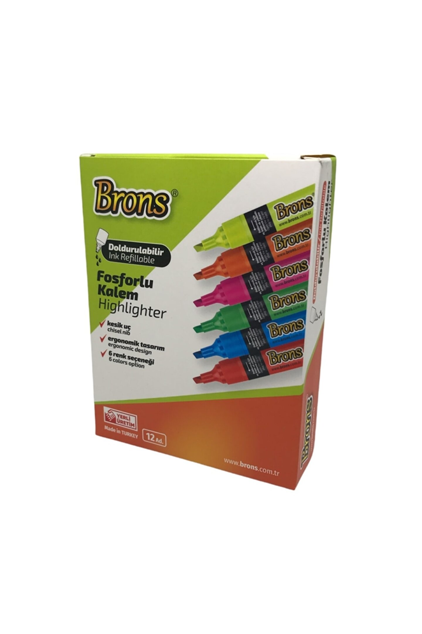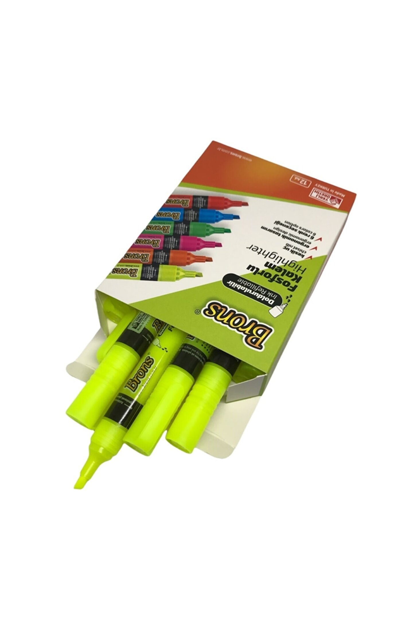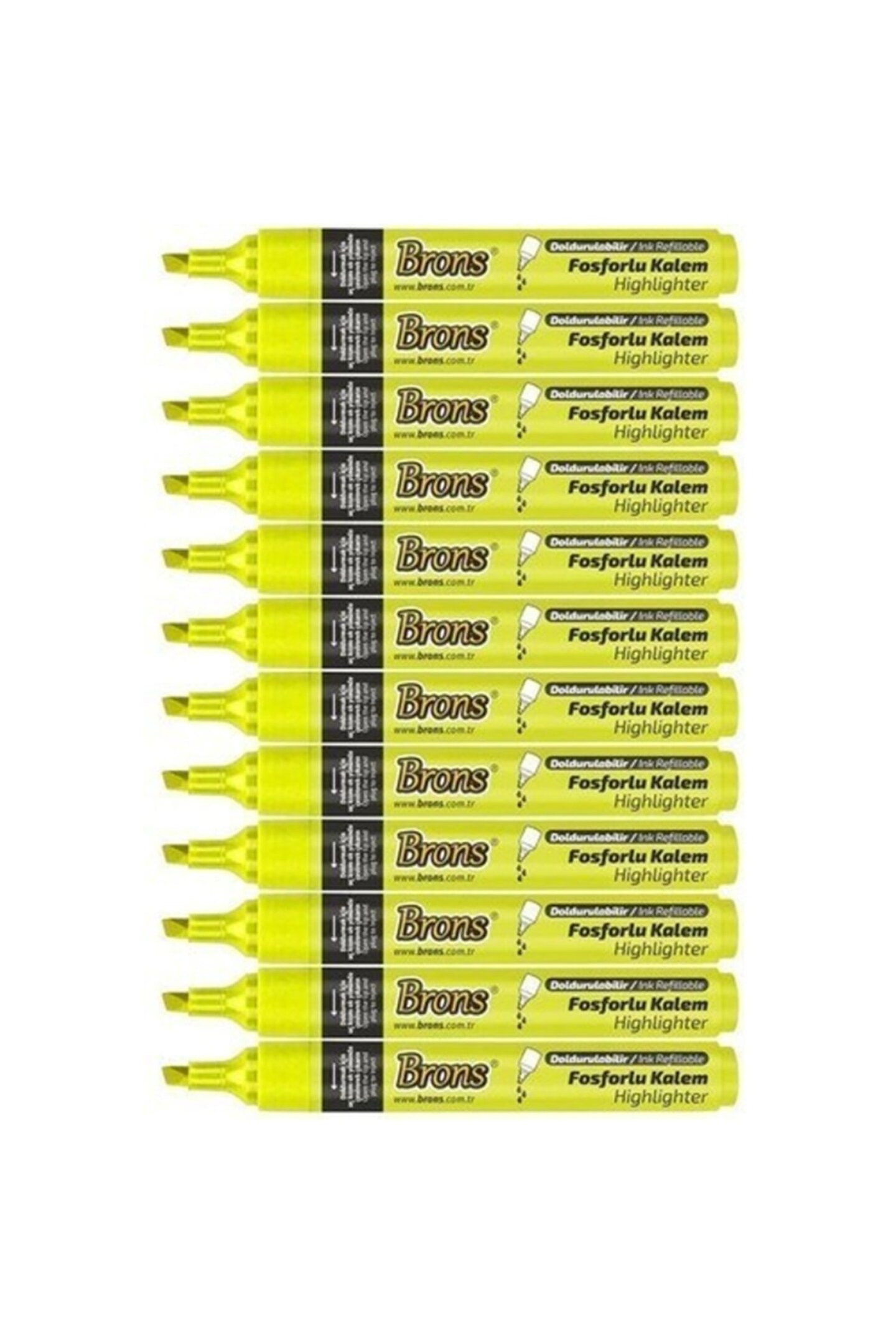 Brons Doldurulabilir Sarı Fosforlu Kalem 12'li Yerli Üretim Doldurulabilir 4,5 mm Kesik Uçlu Kağıt, fax kağıdı, gazete, dergi vb. ; için kullanımı uygundur. ; Mürekkebi kalıcıdır, silinmez.;