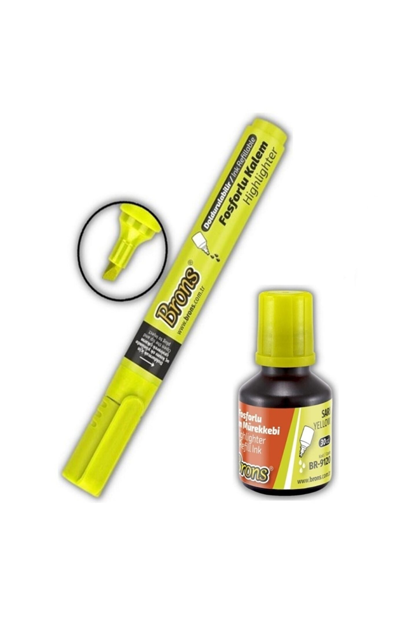 Brons Doldurulabilir Sarı Fosforlu Kalem Ve 30cc Mürekkebi