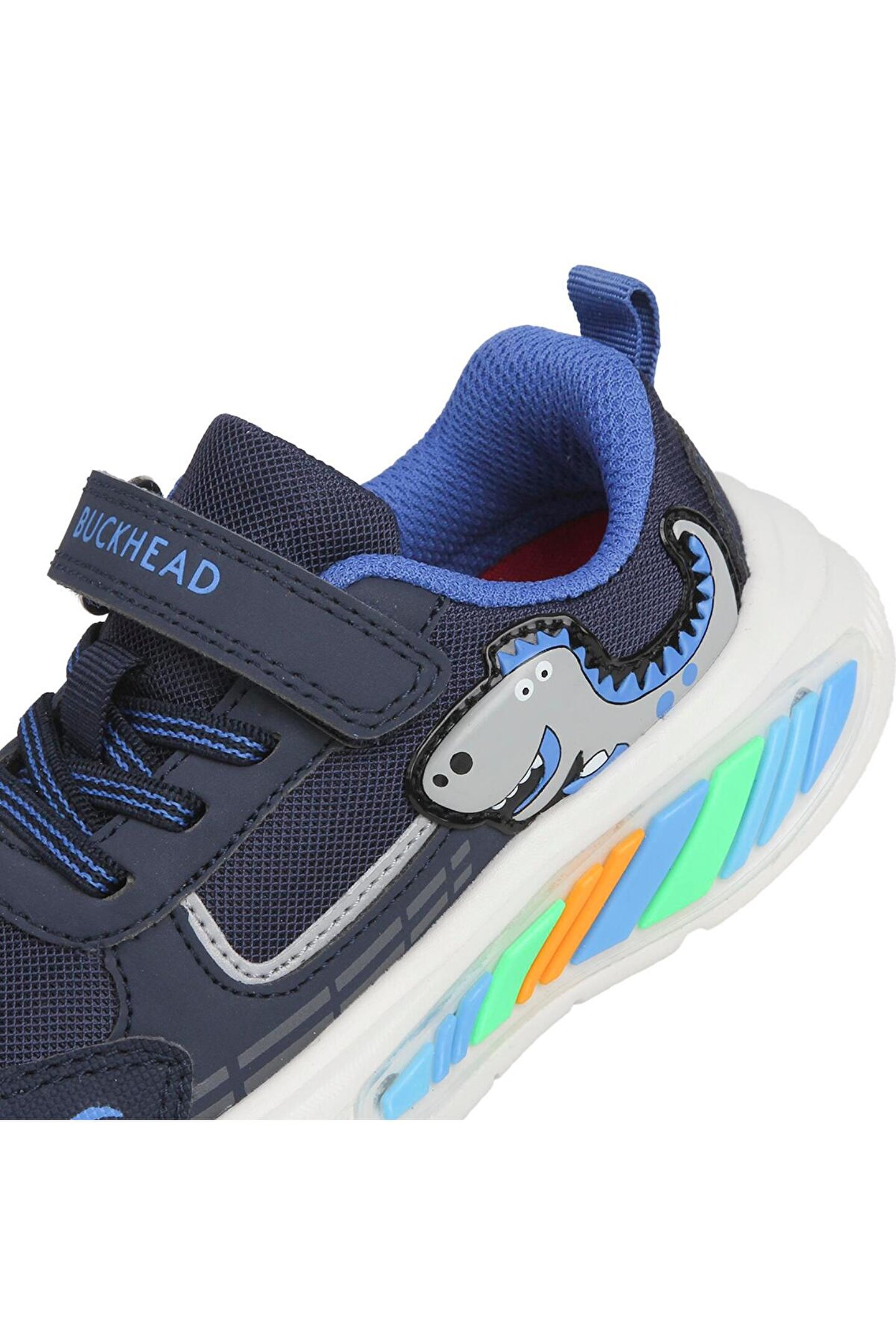 Buckhead Rex Çocuk Işıklı Spor Ayakkabı Buck3043, renkli ışıkları ve sevimli dinozor tasarımıyla çocukların ilgisini çeken, konforlu ve eğlenceli bir modeldir. Dayanıklı tekstil dış yüzeyi ve yumuşak iç astarı, gün boyu rahat kullanım sağlar. Cırtlı bağlama sistemi, çocukların ayakkabıyı kolayca giyip çıkarmasına imkân tanırken, 2,5 cm topuk boyu ve esnek tabanı güvenli adımlar atılmasını destekler. Hafif yapısı sayesinde oyun, okul ve günlük kullanım için idealdir.