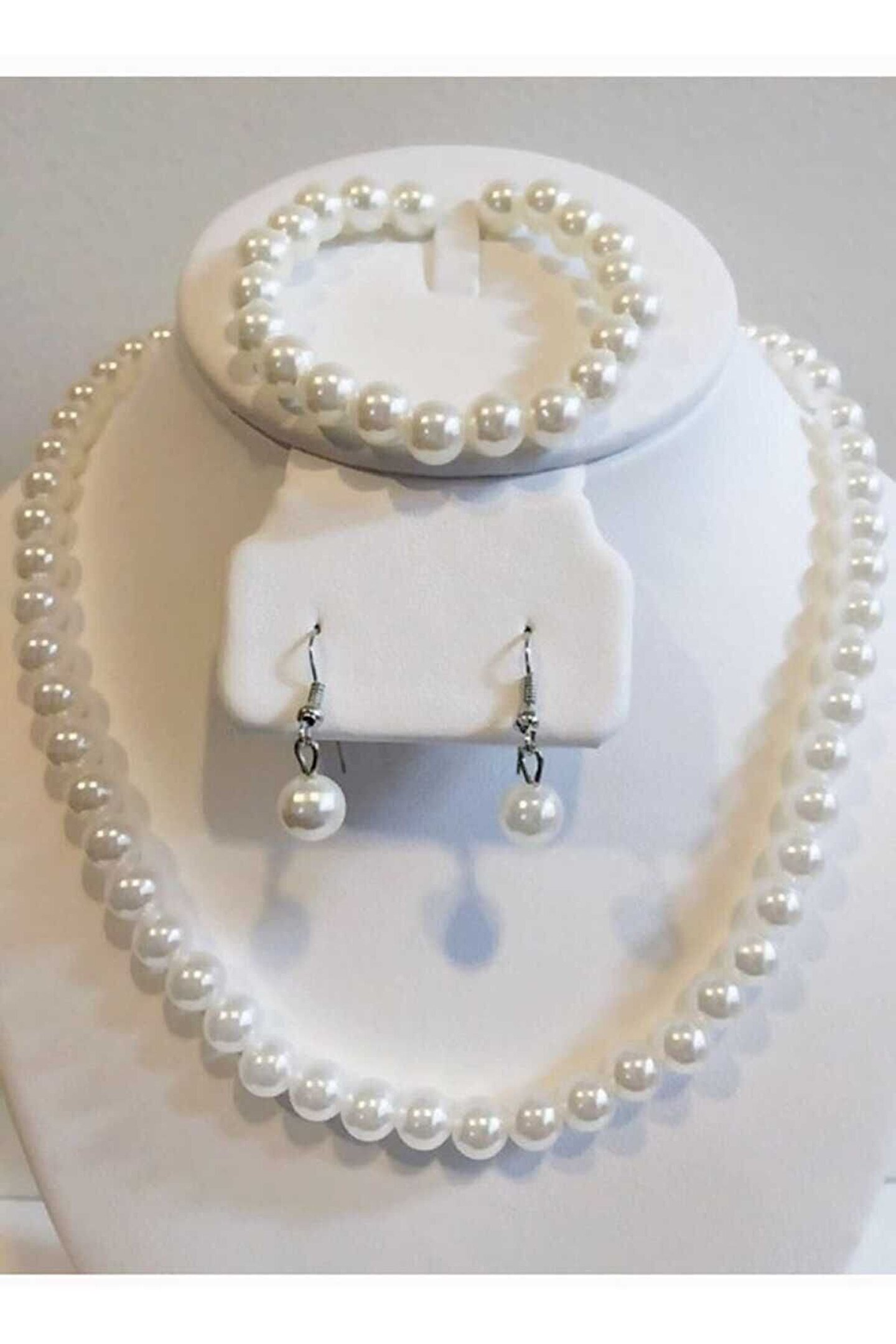İnci materyali ile üretilmiş, zarif ve şık bir görünüm sunar; Cam taş kullanımı sayesinde ışığı mükemmel bir şekilde yansıtarak göz alıcı bir parlaklık sağlar; Kolye, küpe ve bileklik olmak üzere üç parçadan oluşan set, tam bir uyum içinde kombinlenebilir; Her parça ayrı ayrı da kullanılabilir, böylece farklı kombinasyonlar yaratma imkanı sunar;