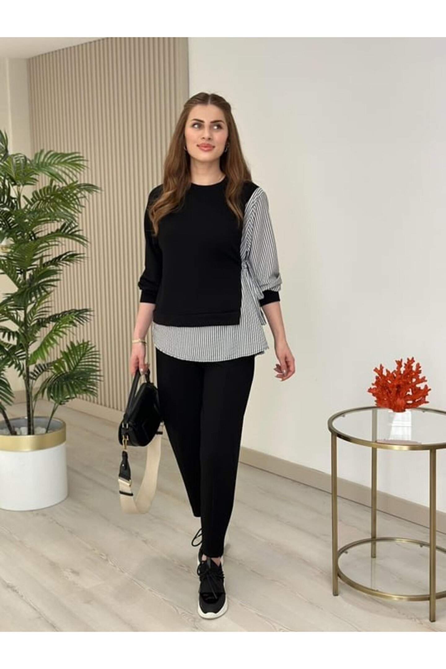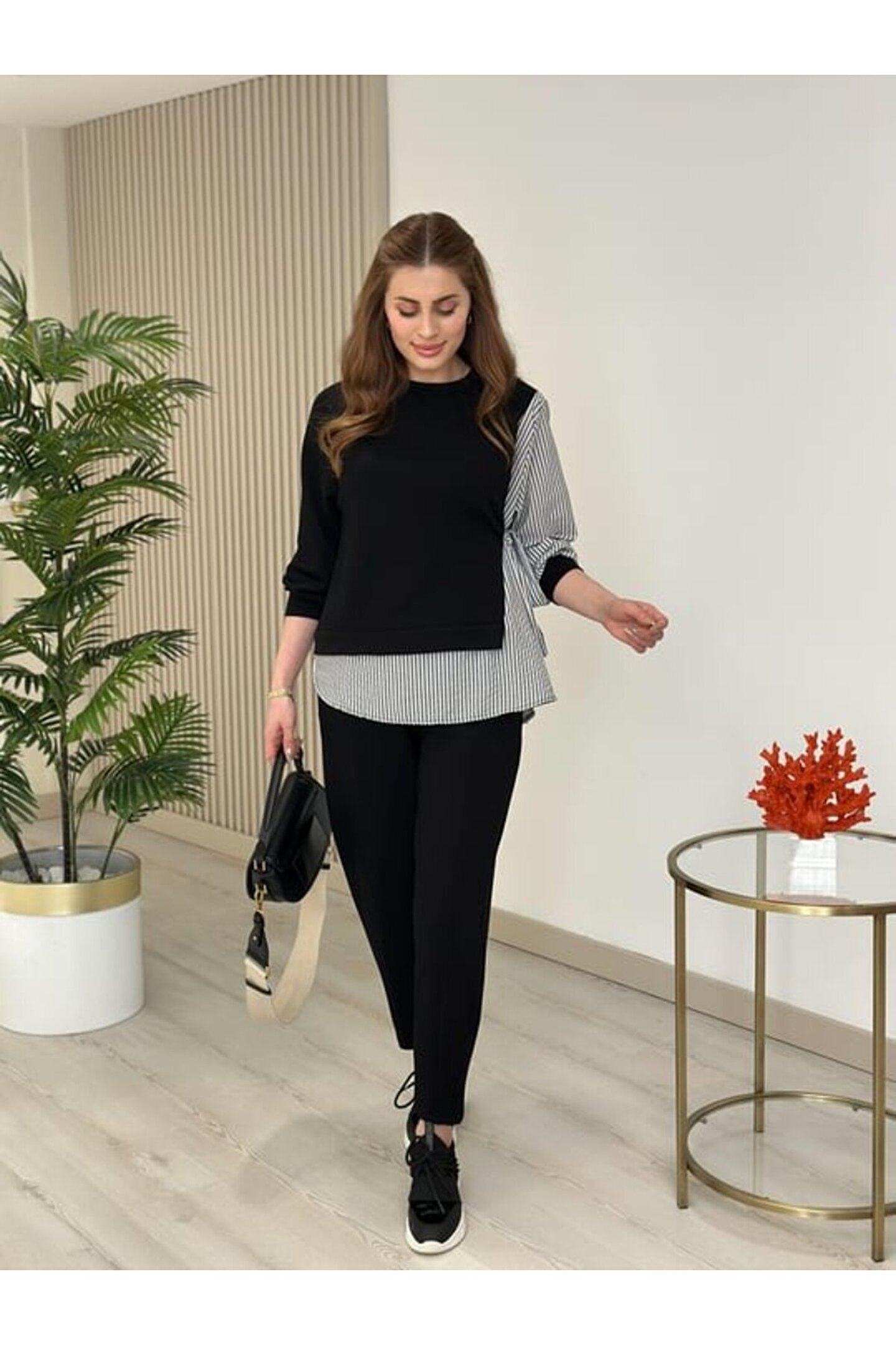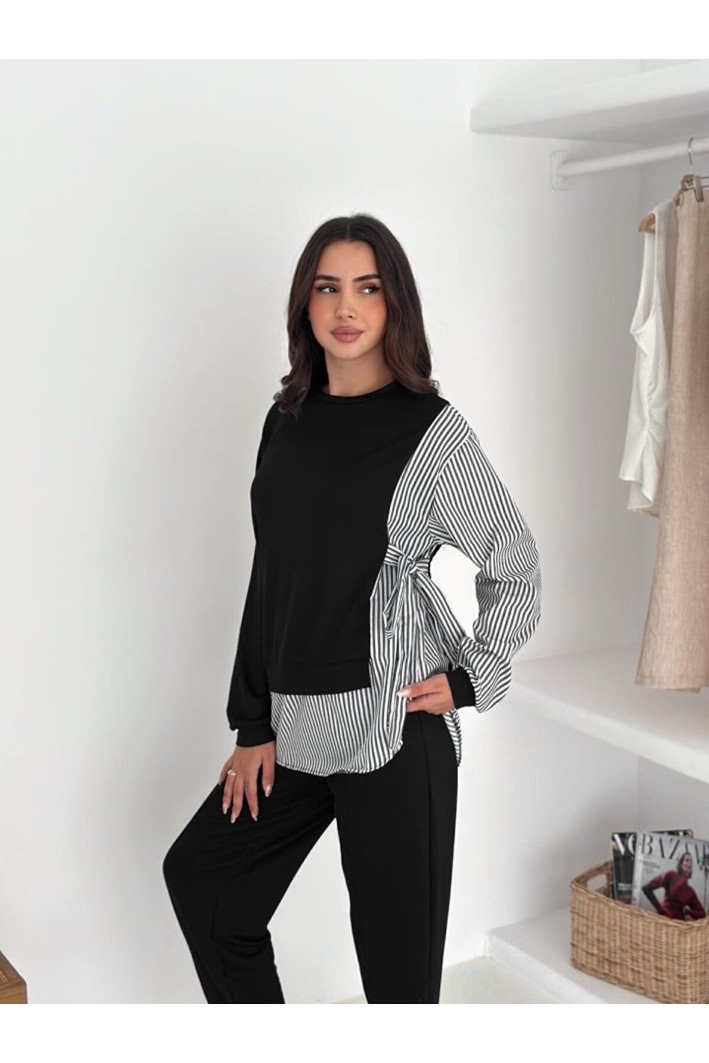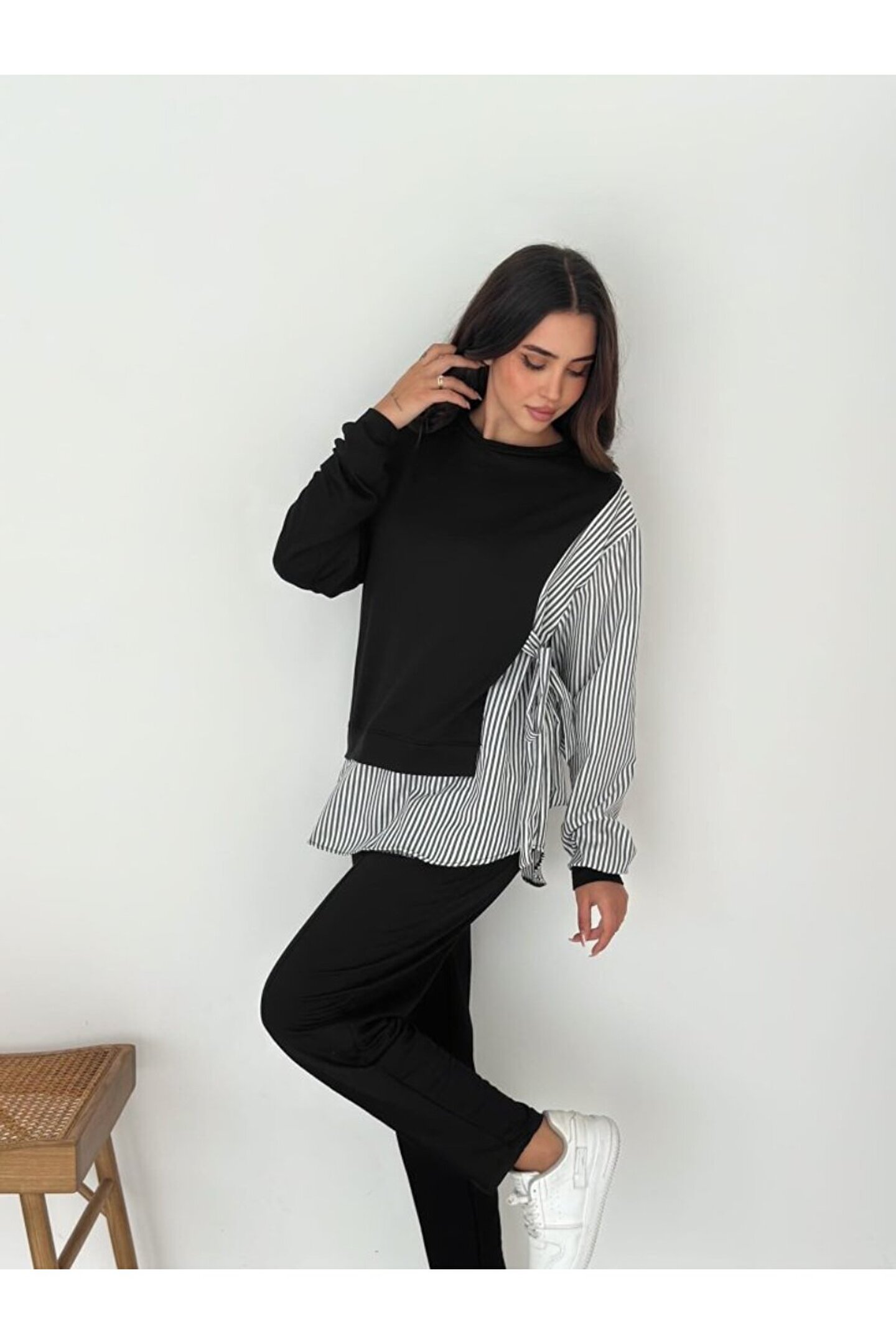 Kadın Gömlek Detay çizgili Yandan Bağlamalı Ikili Takım