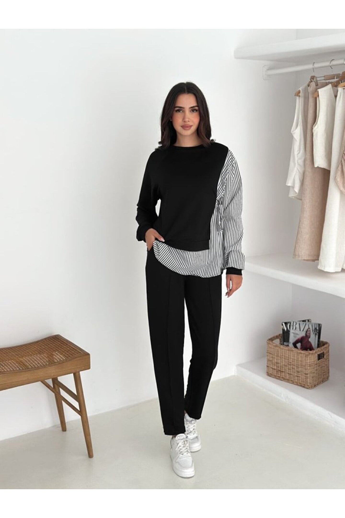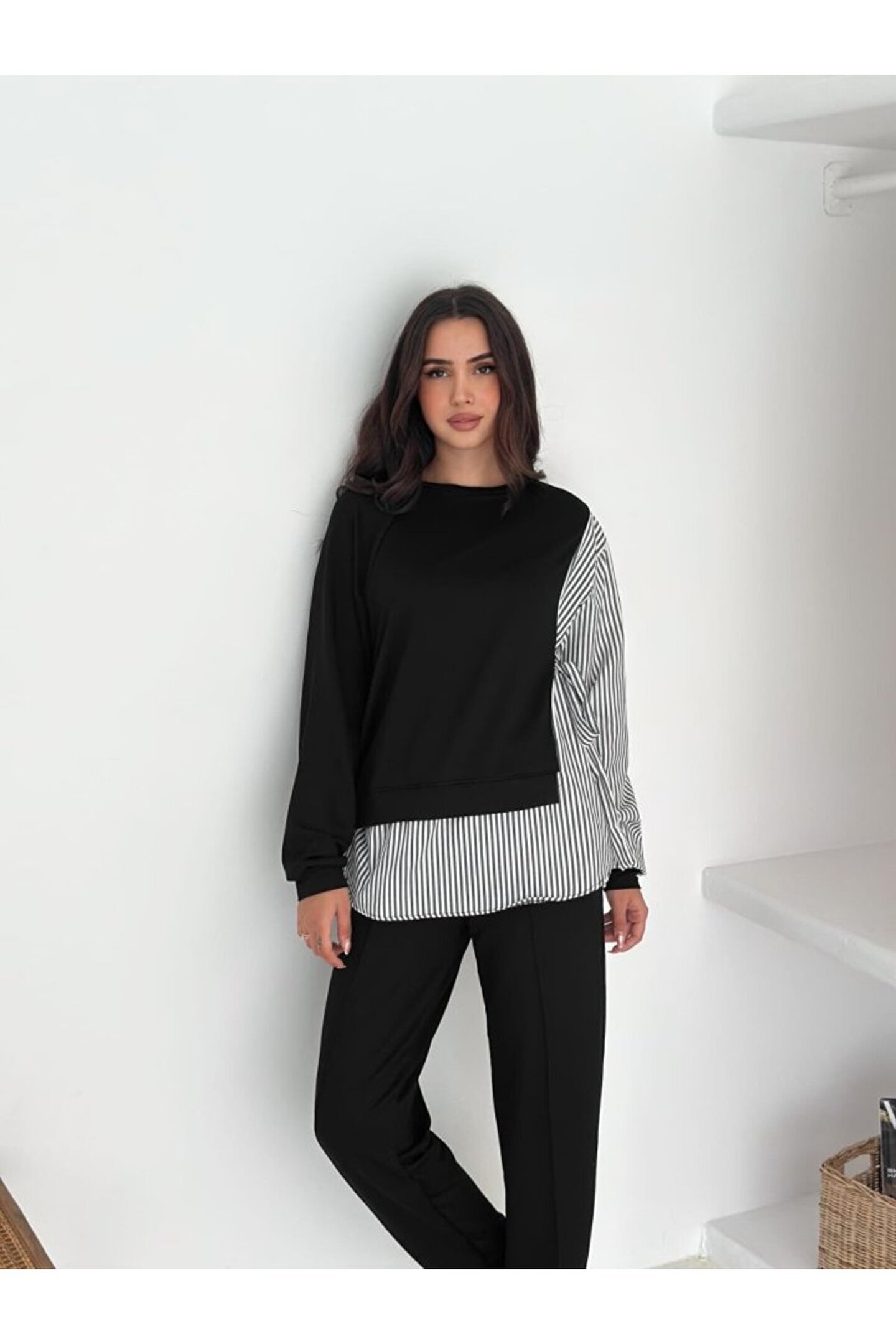buHillco EQURİ Kadın Gömlek Detay çizgili Yandan Bağlamalı Ikili Takım