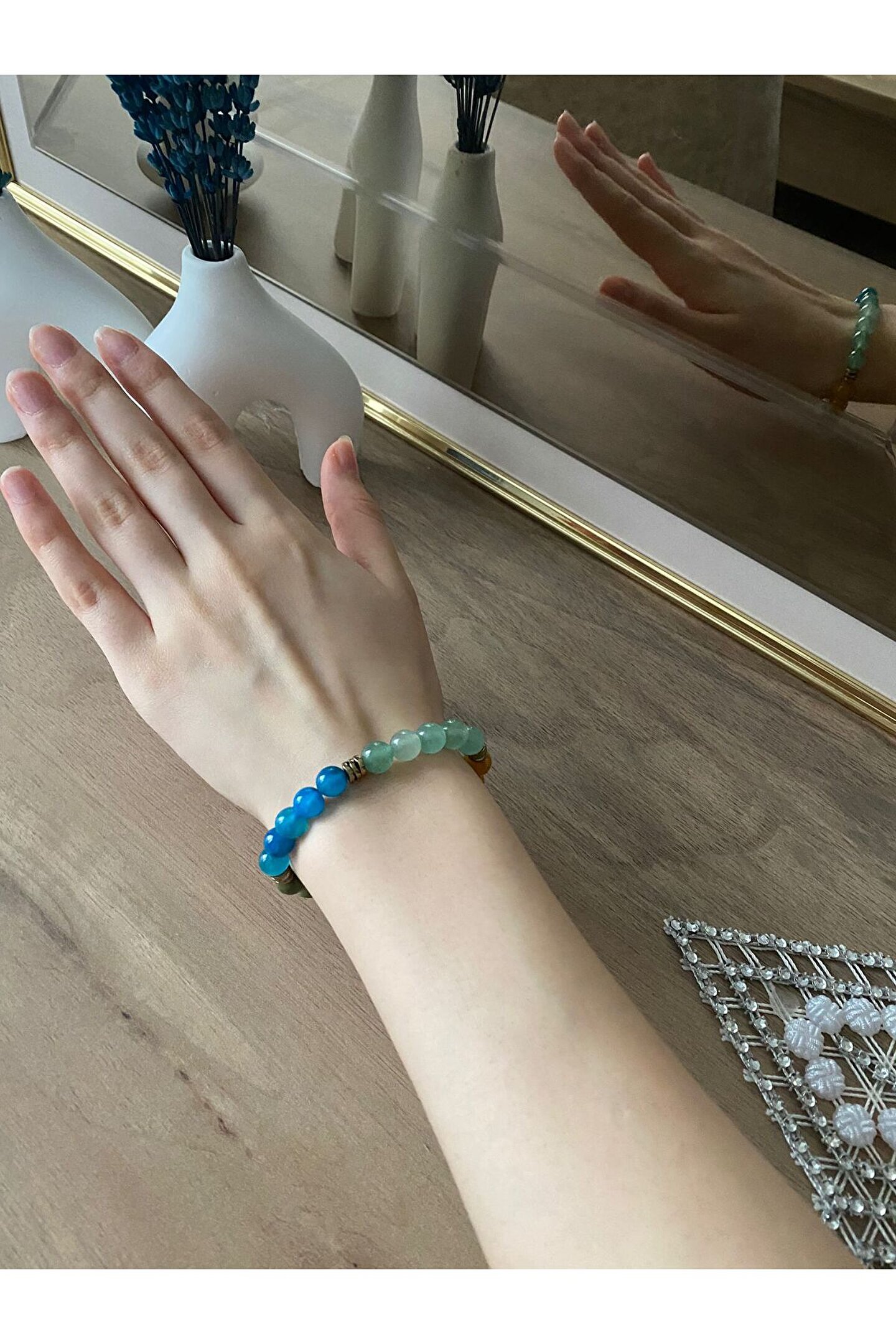 Doğal taş bileklik, boğa burcu özelliklerini yansıtan zarif bir aksesuar seçeneği sunar; Her bir bileklik, benzersiz ve otantik bir görünüm için doğal taş kullanılarak üretilmiştir; Doğal taş materyali sayesinde bileklik, hem şıklığı hem de doğallığı bir arada sunar; Boğa burcu bileklik, boğa burcu bireylerinin enerjik ve kararlı ruhunu yansıtan bir aksesuar olarak öne çıkar;