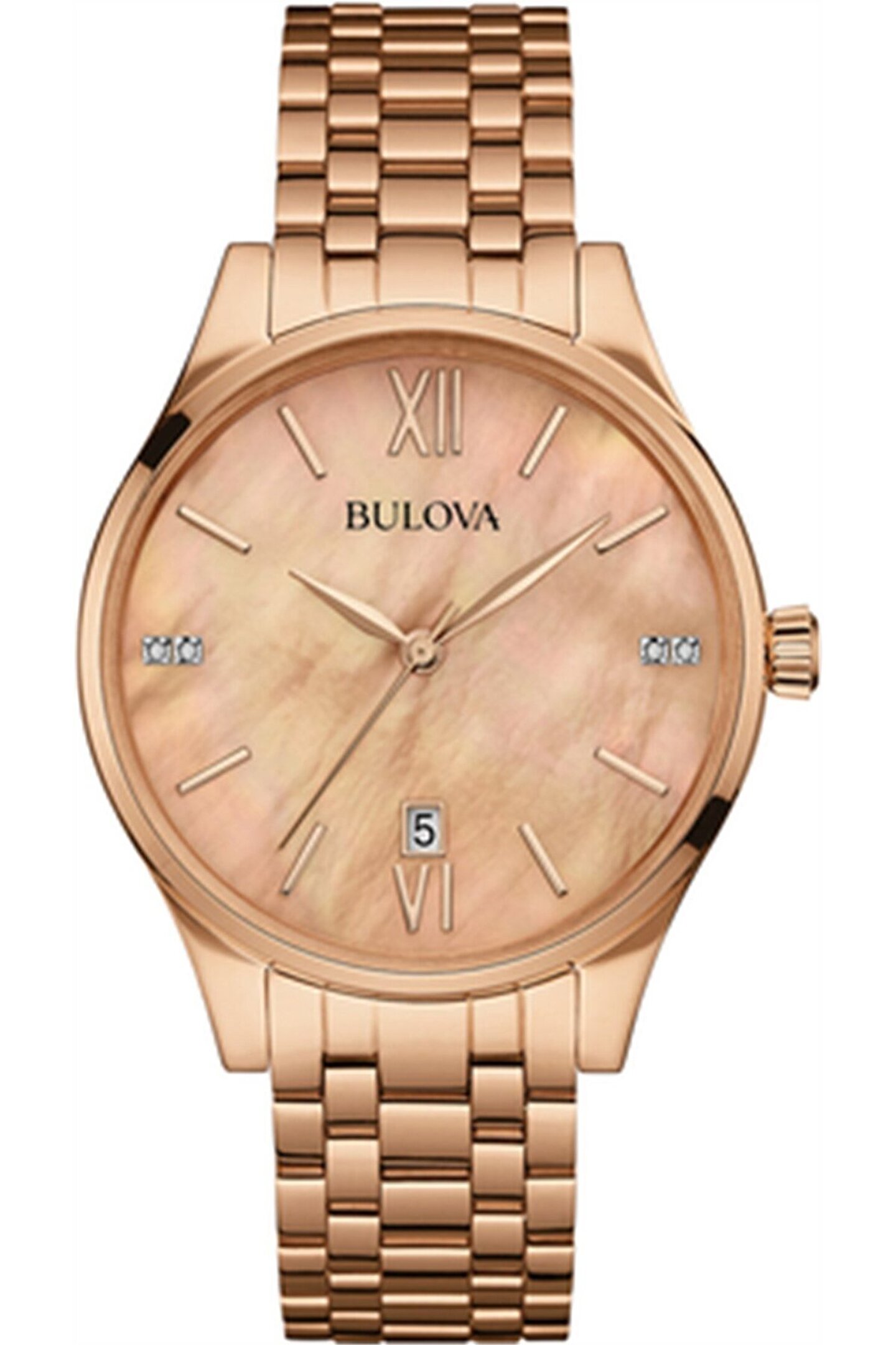 Marka : Bulova Cinsiyet : Kasa Cinsi : Çelik Kadran Rengi : Roz Diamond Kordon Cinsi : Çelik Kordon Rengi : Roz(pembe altın) Makine : Quartz Cam : Safir Takvim : Var Kasa Çapı(mm) : 36mm Su Geçirmezlik : 30m