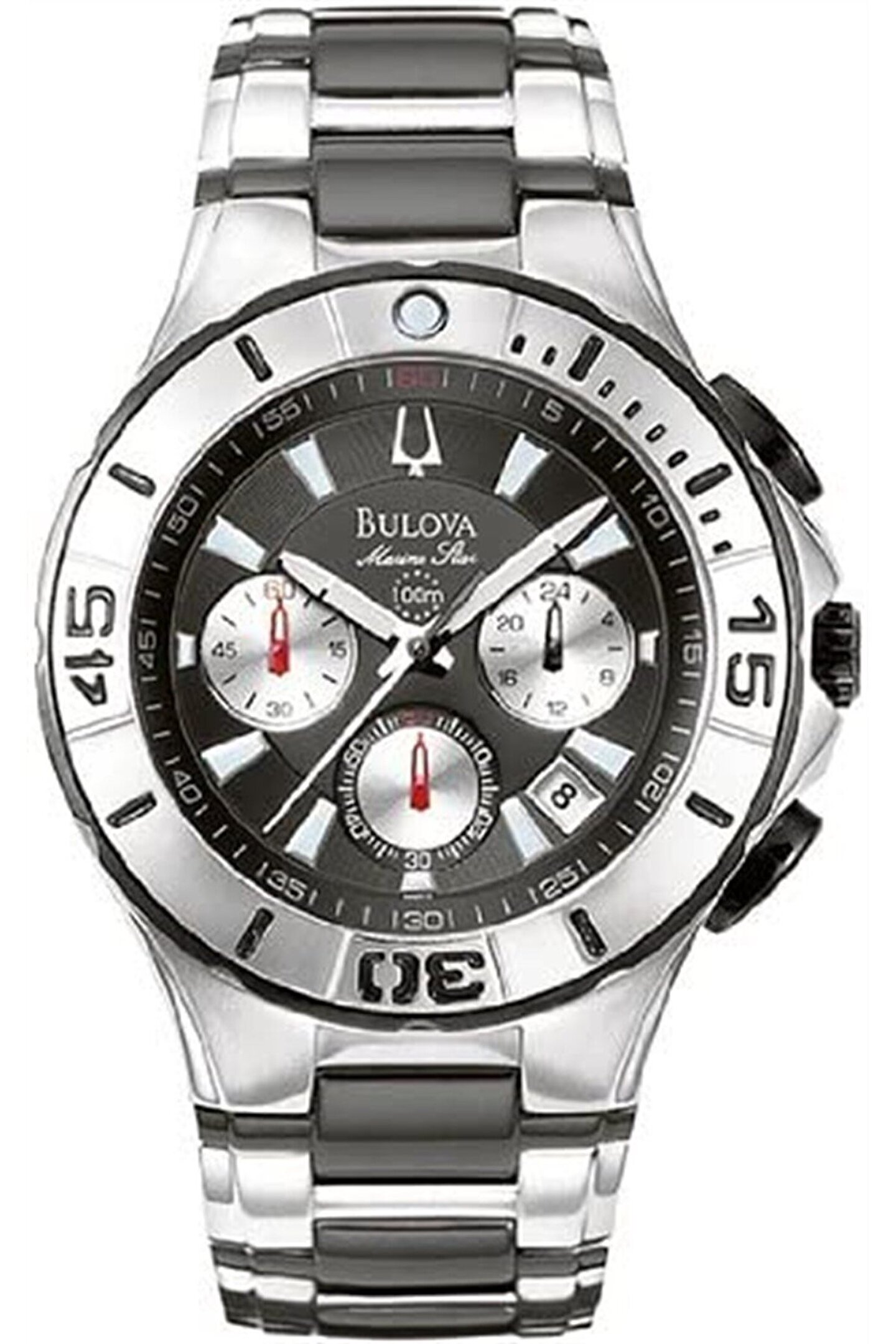 Marka : Bulova Cinsiyeti : Erkek Kadran Rengi : Siyah Kordon Cinsi : Çelik Seri Adı : Su Geçirmezliği : 100 m Cam Cinsi : Mineral Kasa Cinsi : Çelik Kasa Şekli : Yuvarlak Takvim Özelliği : Var Kasa Çapı : 41 mm Kasa Kalınlığı : 11,5 mm Kasa Yüksekliği : 42 mm Ağırlığı : 156 g