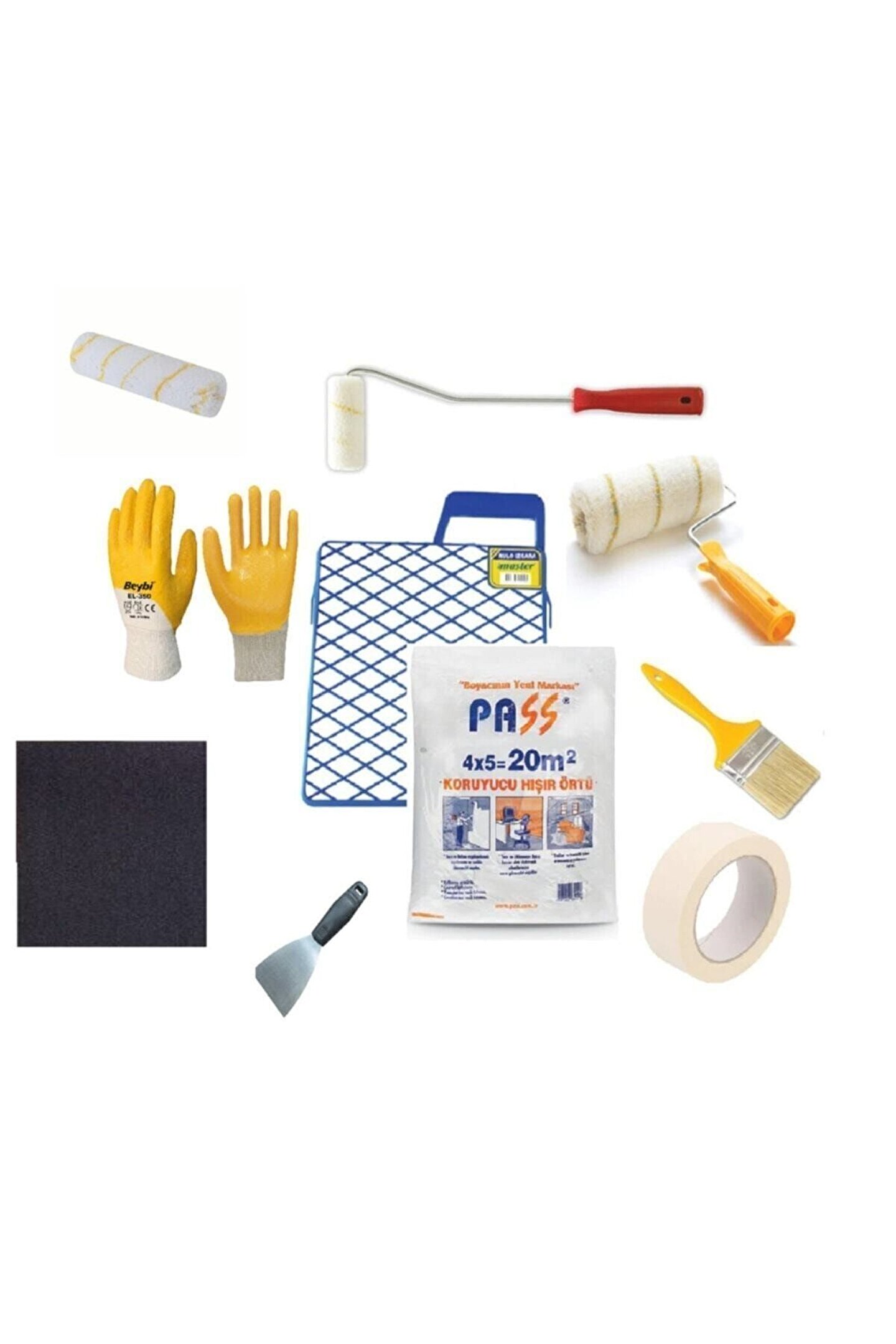 1 ADET 20 LİK RULO 1 ADET KESTİRME FIRÇA 1 ADET PARMAK RULO 1 ADET 20 m2 HIŞIR ÖRTÜ 1 ADET KAĞIT BANT 1 ADET RULO IZGARASI 1 ÇİFT ELDİVEN 1 ADET SPATULA 1 ADET ZIMPARA 1 ADET PARMAK RULO YEDEĞİ