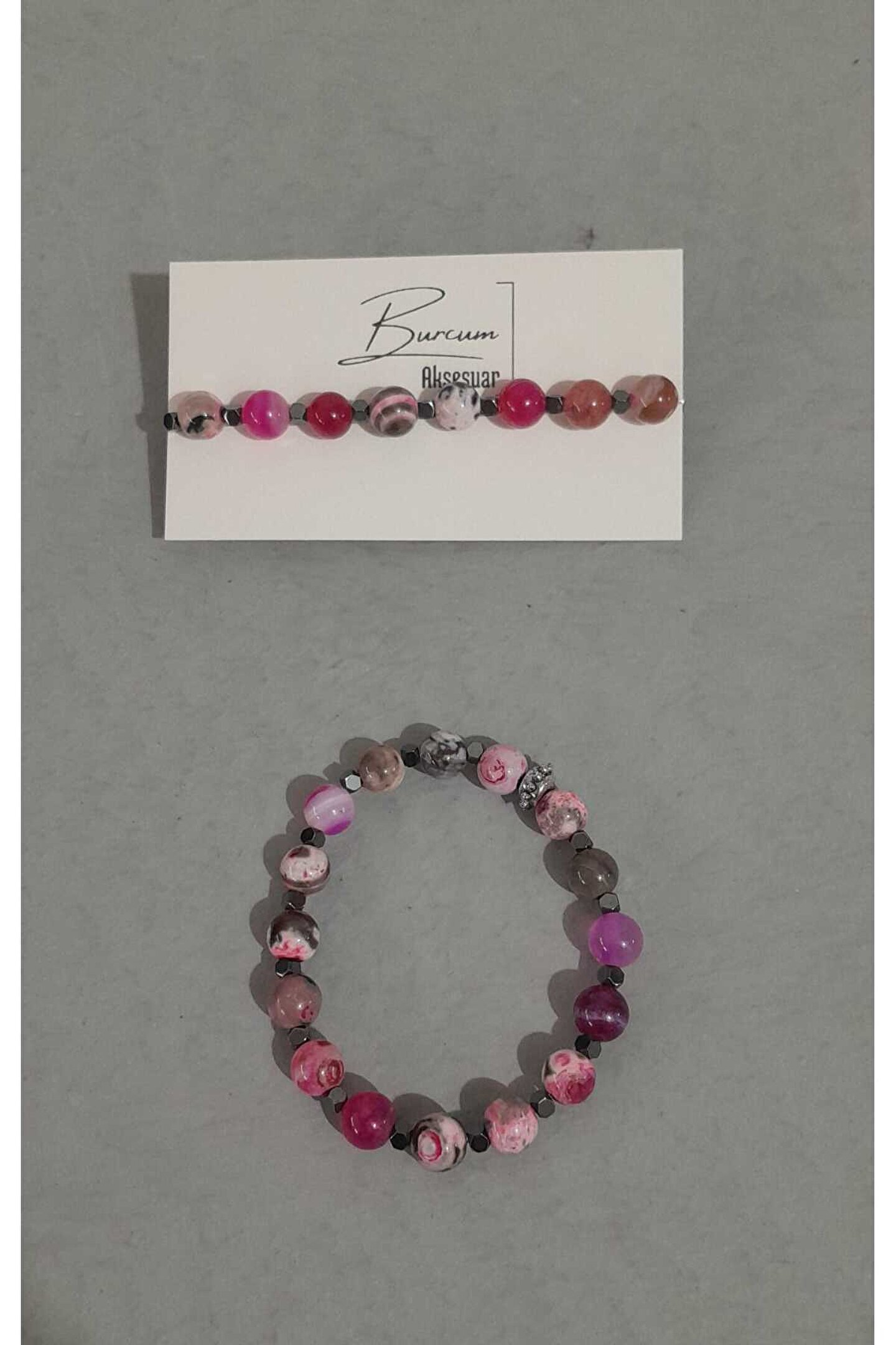 - Pembe akik taşı, hem doğal güzelliği hem de şıklığı ile dikkat çeker.; - Materyal bileşenindeki küçük taşlar hematit taşından oluşur, bu da bilekliğin dayanıklılığını artırır.; - Unisex tasarımı sayesinde herkes tarafından rahatlıkla kullanılabilir; hem kadınlar hem de erkekler için idealdir.; - Türkiye menşeli olmasıyla yerel kaynakların değerli taşlara dönüştürülmesine katkı sağlar.; - Yetişkin yaş grubuna hitap eden bu bileklik, günlük kullanım için uygundur ve zarif görünümüyle öne çıkar.; - Doğal taş kullanımı, her parçaya benzersiz bir karakter kazandırırken aynı zamanda sürdürülebilirliği destekler.; - Hematit materyali sayesinde bileklik, uzun süreli kullanım için dayanıklılık sunar.