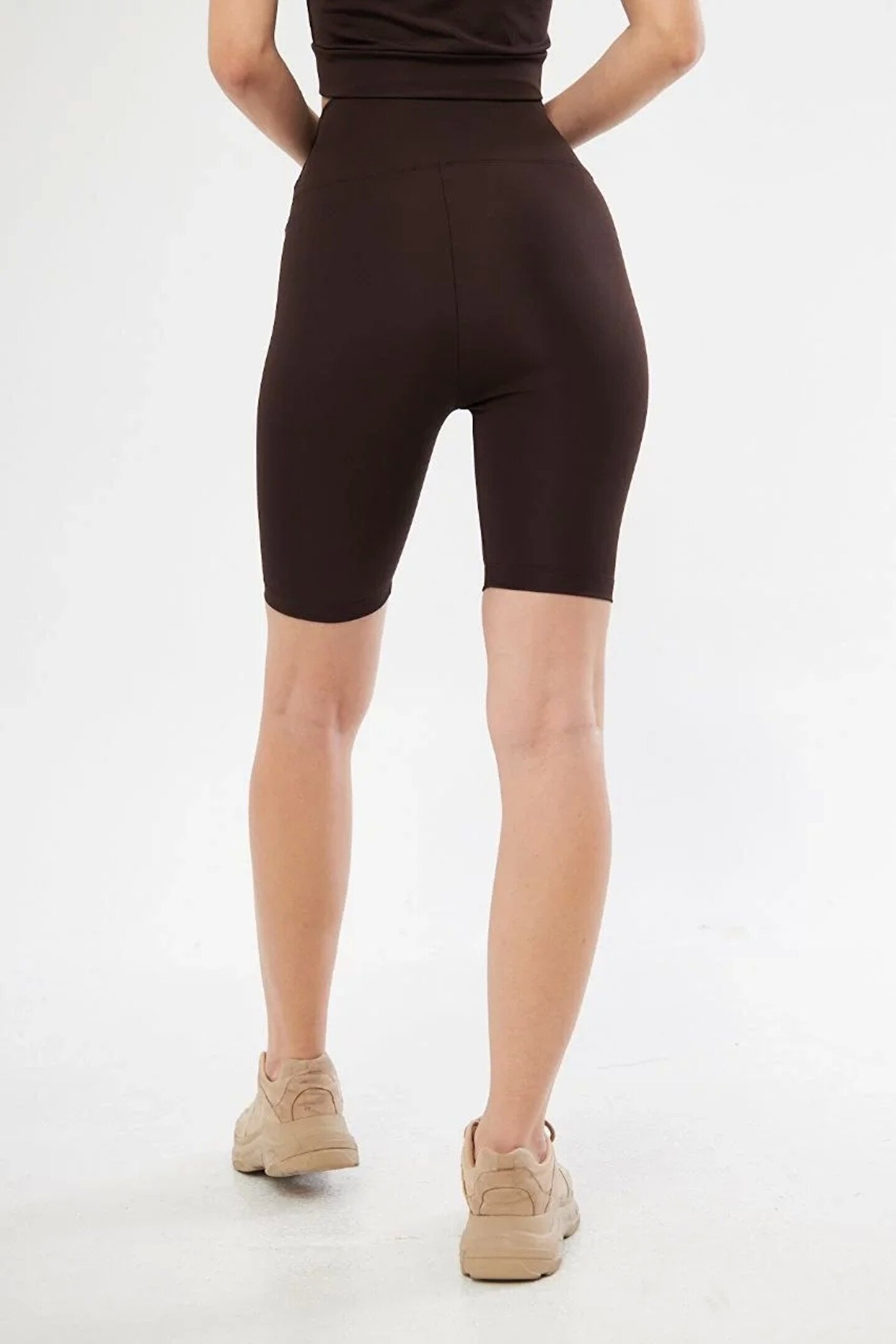 BÜŞRA TEZEL MODA Biker Sporcu Şort - Kahve