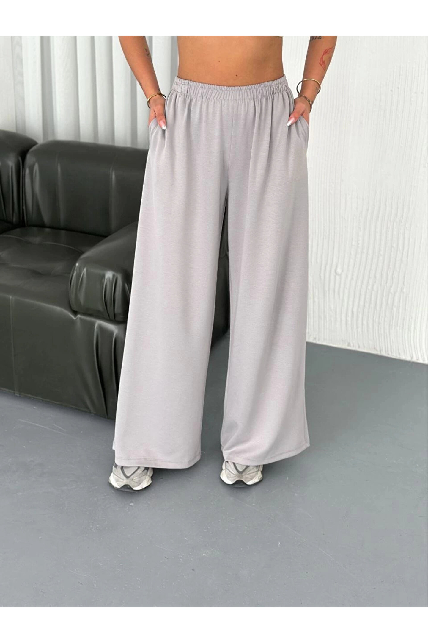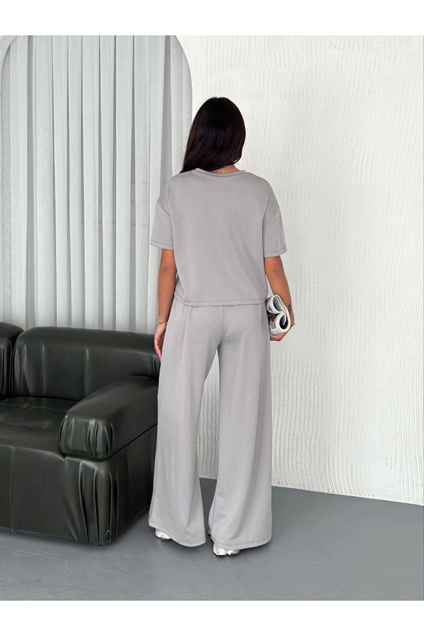 Osy Modal Yumuşak Dokulu Kumaş Bisiklet Yaka T-shirt Bol Paça Pantalon Ikili Takım - Boyalı Gri
