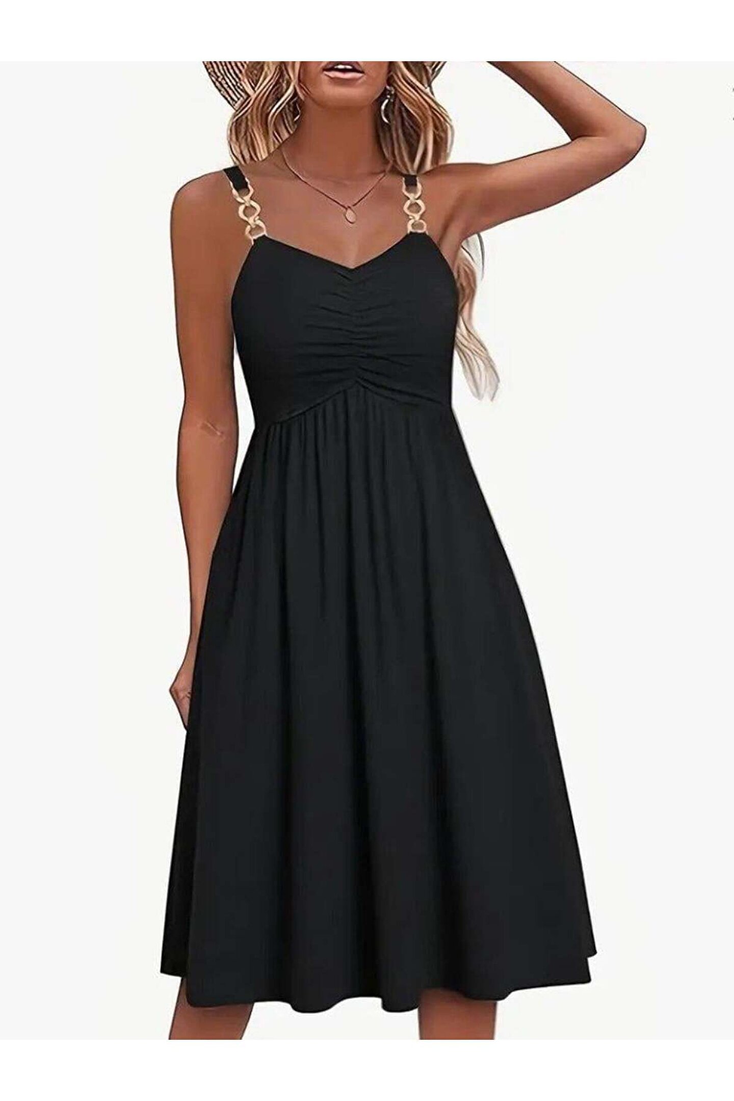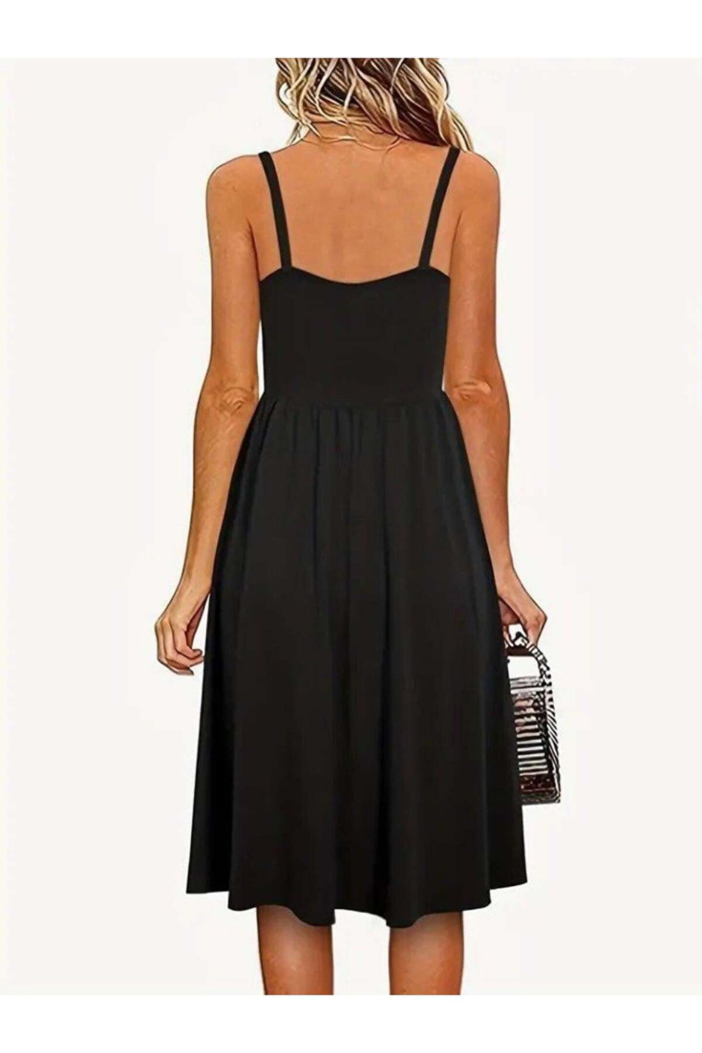 BÜŞRA TEZEL MODA Kadın Ip Askılı V Yakalı Kısa Viskon Elbise