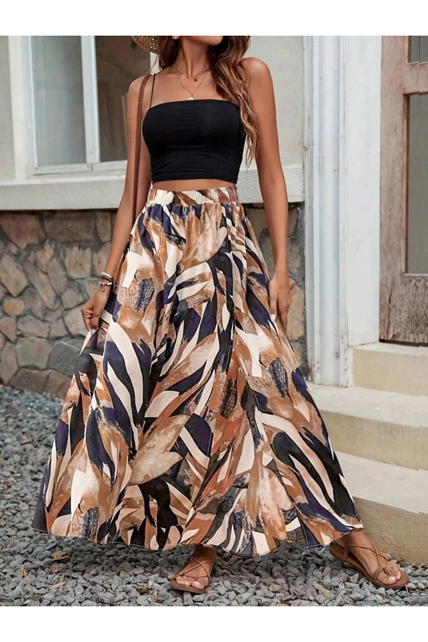 Kadın Beli Büzgülü Yandan Yırtmaçlı Desenli Süprem Etek