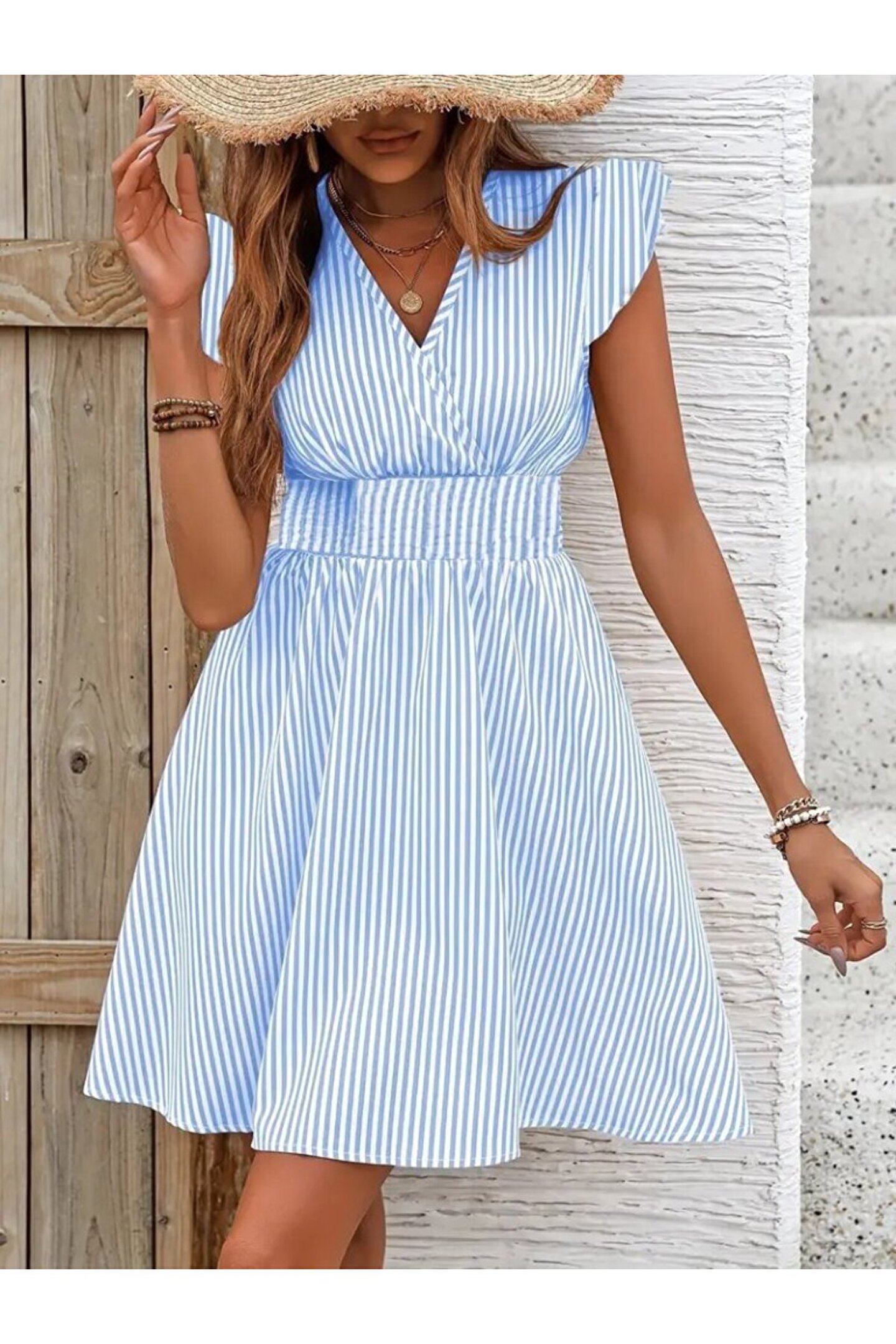 SırBebe Yaka Puantiyeli Şifon Kumaş Mini Mavi Elbise
