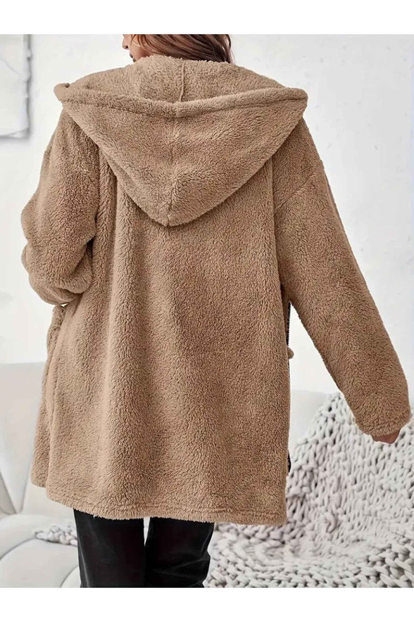 Butik EQURİ Kadın Uzun Kollu Kapşonlu önden Fermuarlı Cepli Welsoft Ceket