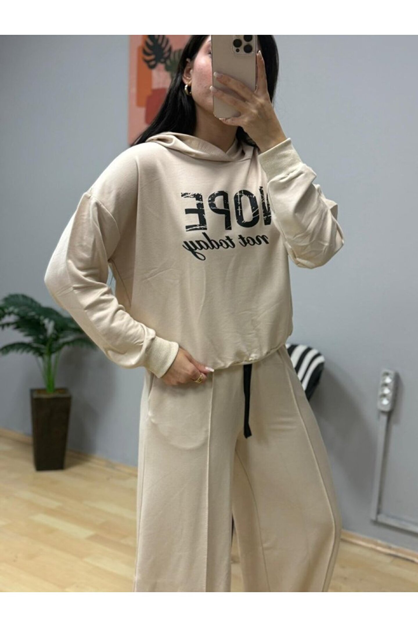 Kadın Uzun Kollu Nope Baskılı Beli Ribanalı Ikili Takım