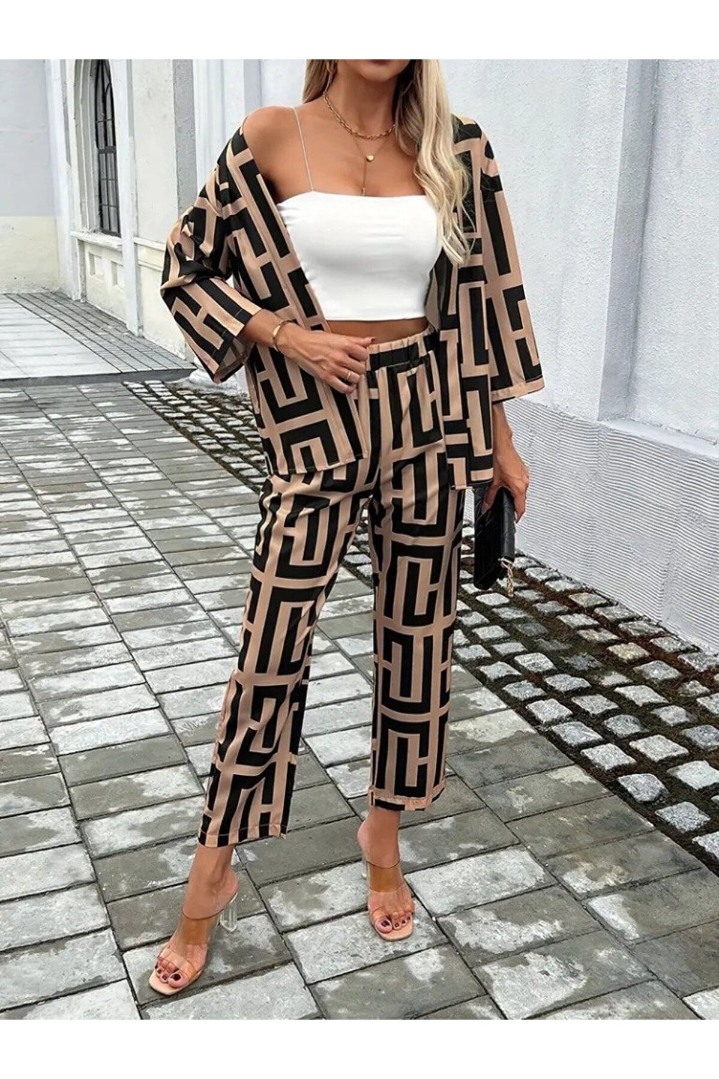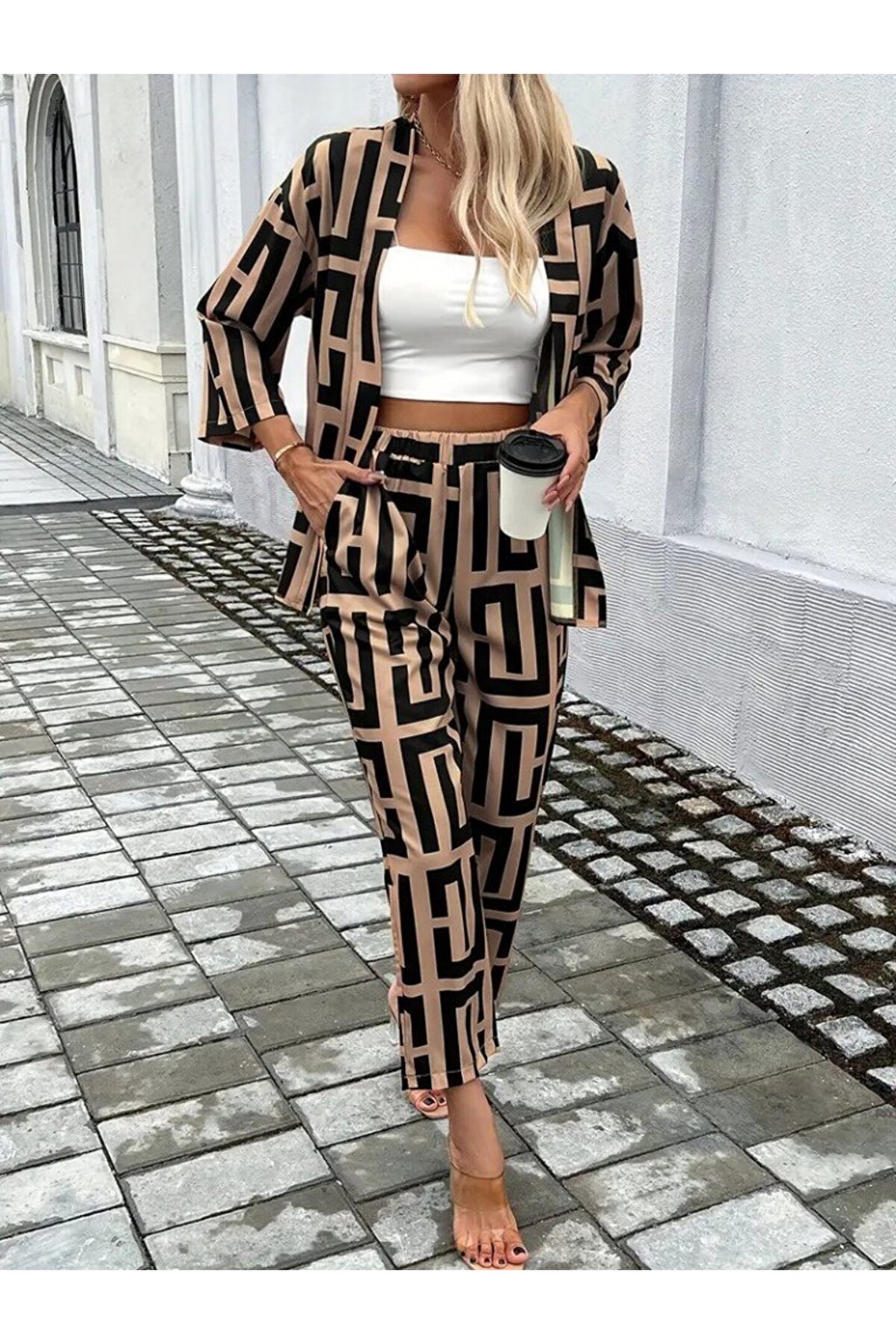 Butik EQURİ Kadın Uzun Kollu önü Açık Desenli Iki Iplik Ceket Ve Pantolon Ikili Takım