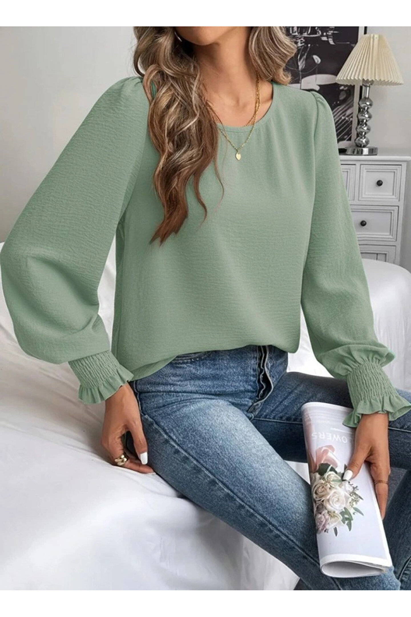 Butik EQURİ Kadın Uzun Kollu Yuvarlak Yaka Aerobin Bluz
