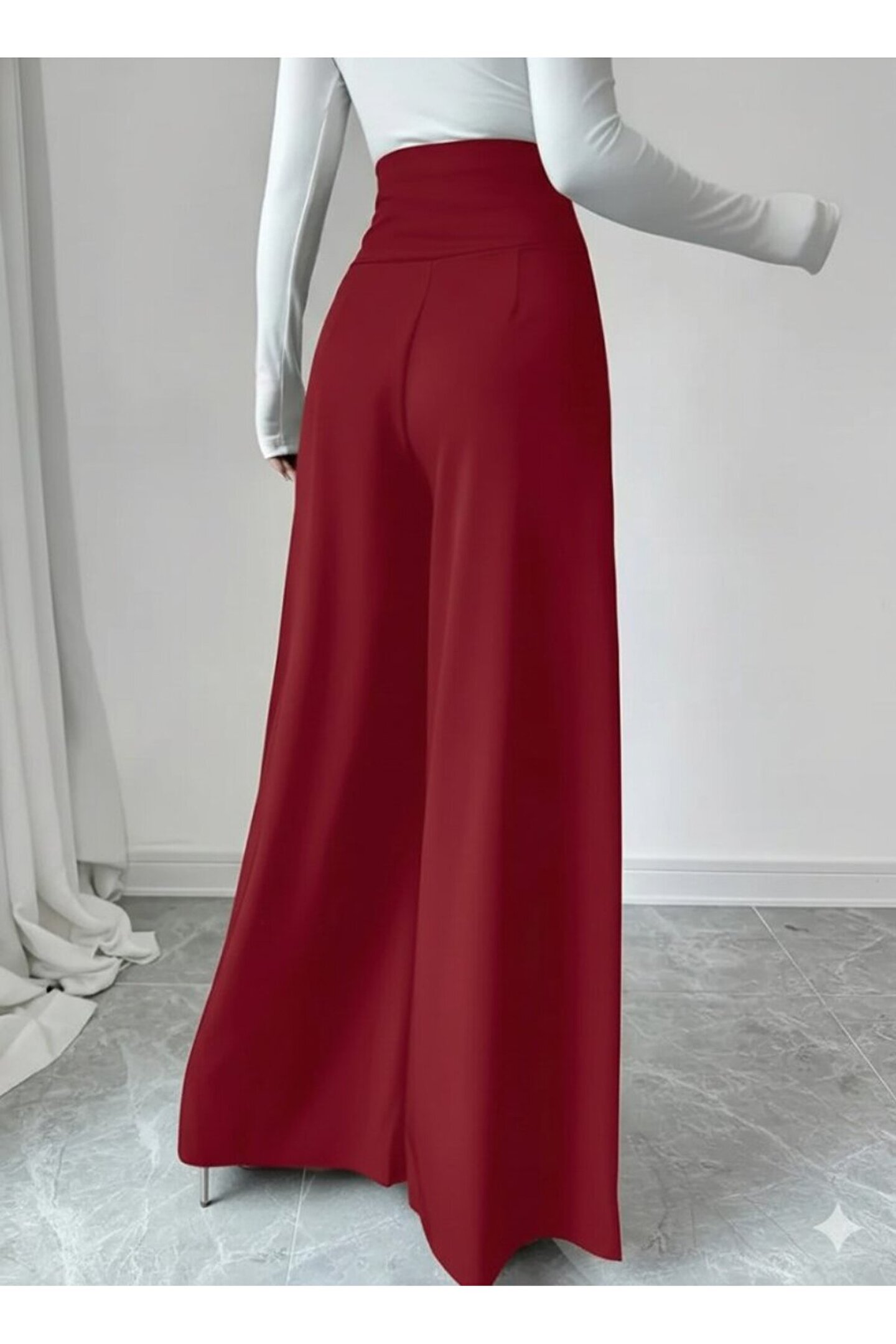 EQURİ Kadın Yüksek Bel Düğmeli Geniş Paçalı Ithal Krep Pantolon