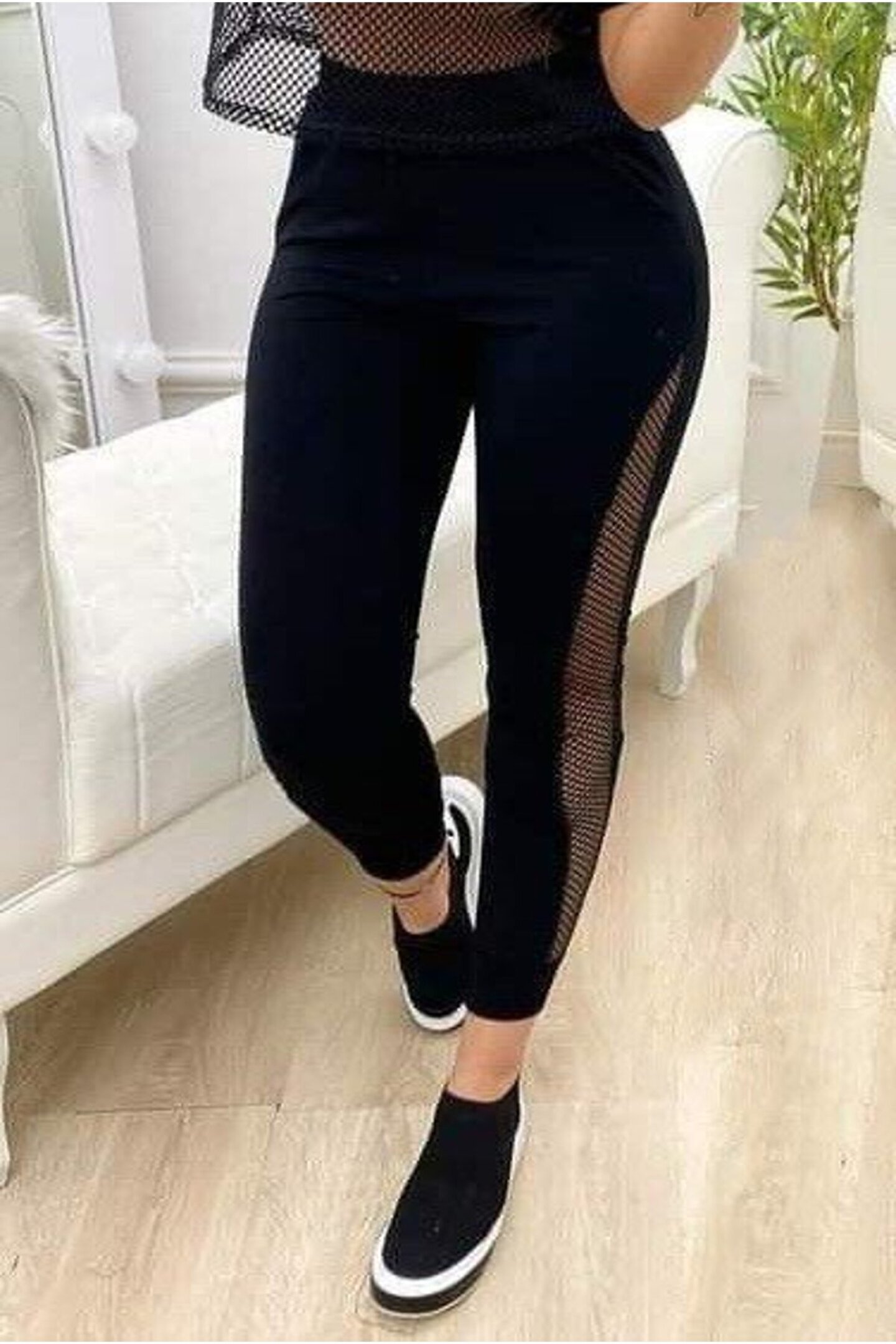 Butik EQURİ Kadın Yüksek Bel File Detaylı Dar Kesim Viskon Iki Iplik Pantolon