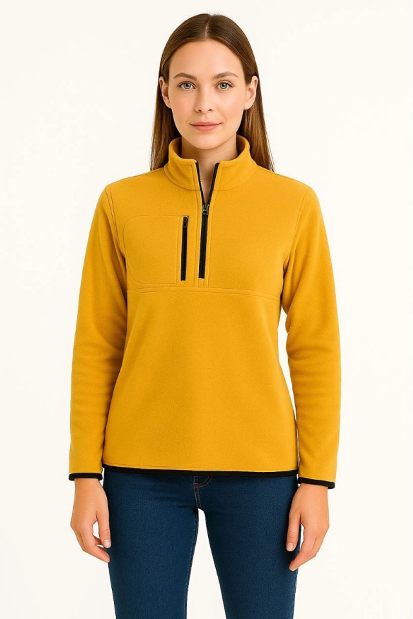 Polar Kazak – Dik Yaka, Yarım Fermuarlı, Fermuarlı Göğüs Cepli, Siyah Biyeli, Kışlık Rahat Regular Fit Günlük Model - Sarı
