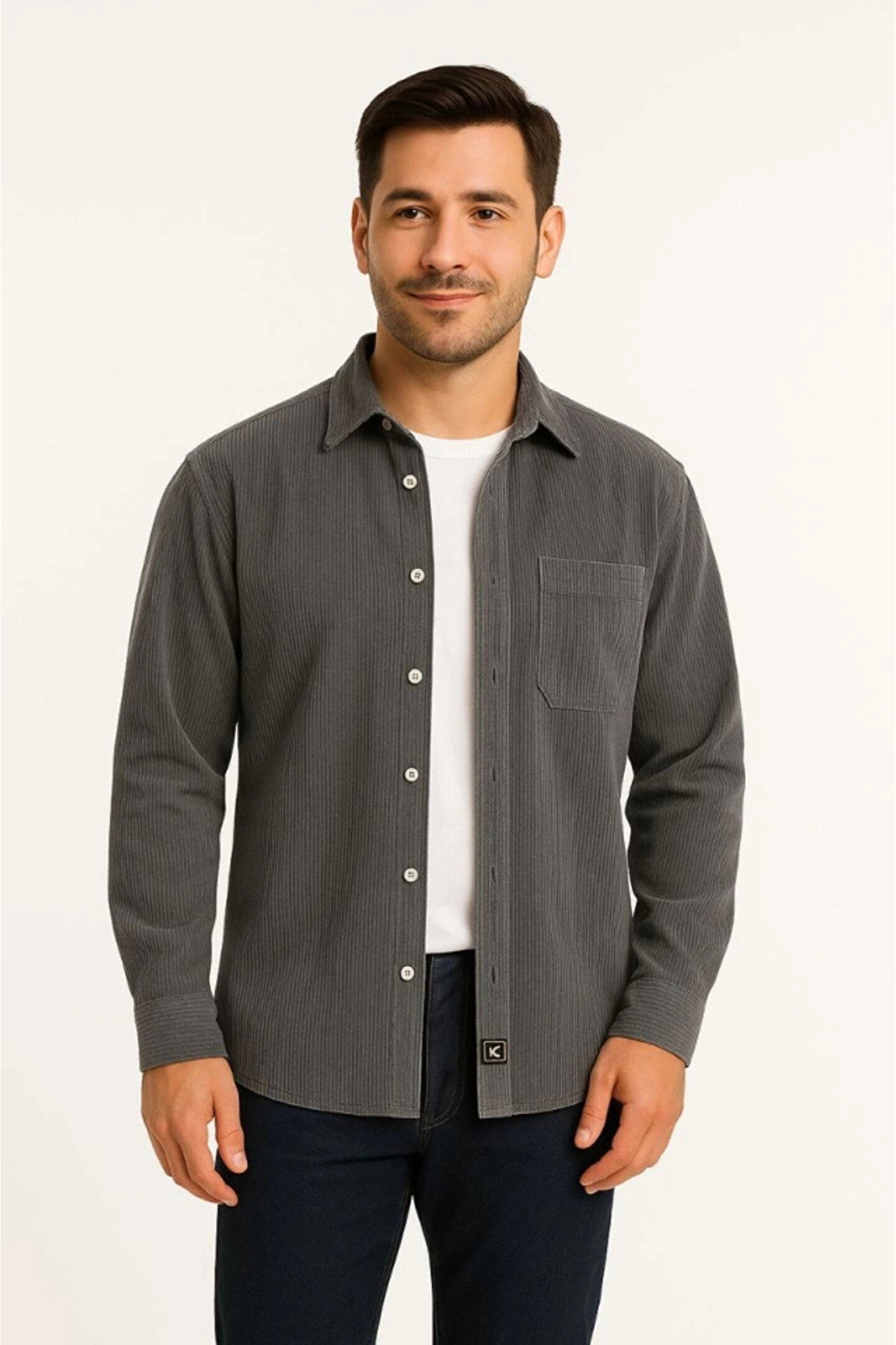 Erkek Fitilli Kadife Cepli Gömlek Oversize Rahat Kalıp - Füme