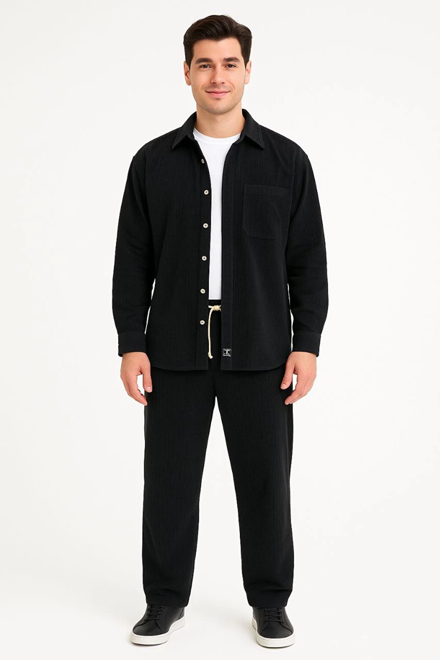 Erkek Kadife Oversize Takım – Gömlek ve Pantolon İkili Set Füme Corduroy Şıklığı, Rahat ve Zarif Dur