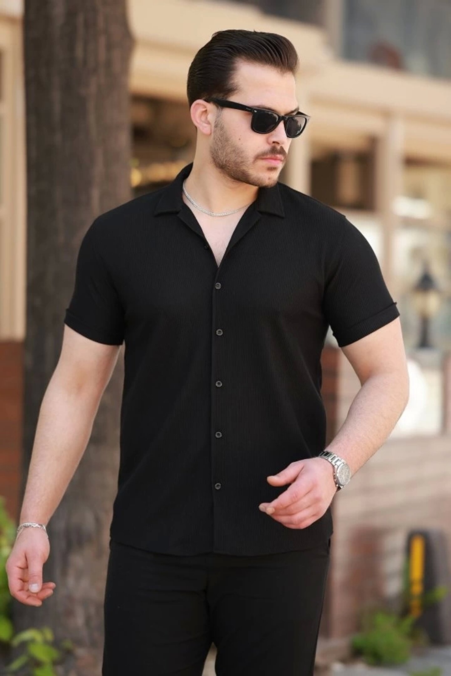 Butik Erkek Ottoman Kumaş Apaj Yaka Kısa Kollu Gömlek