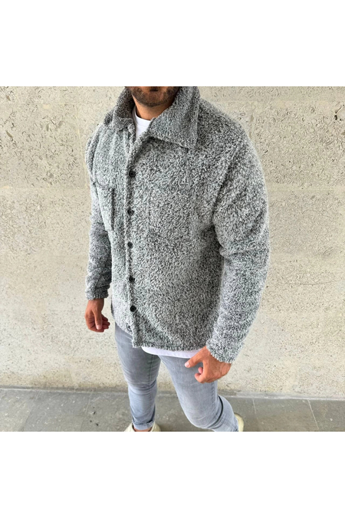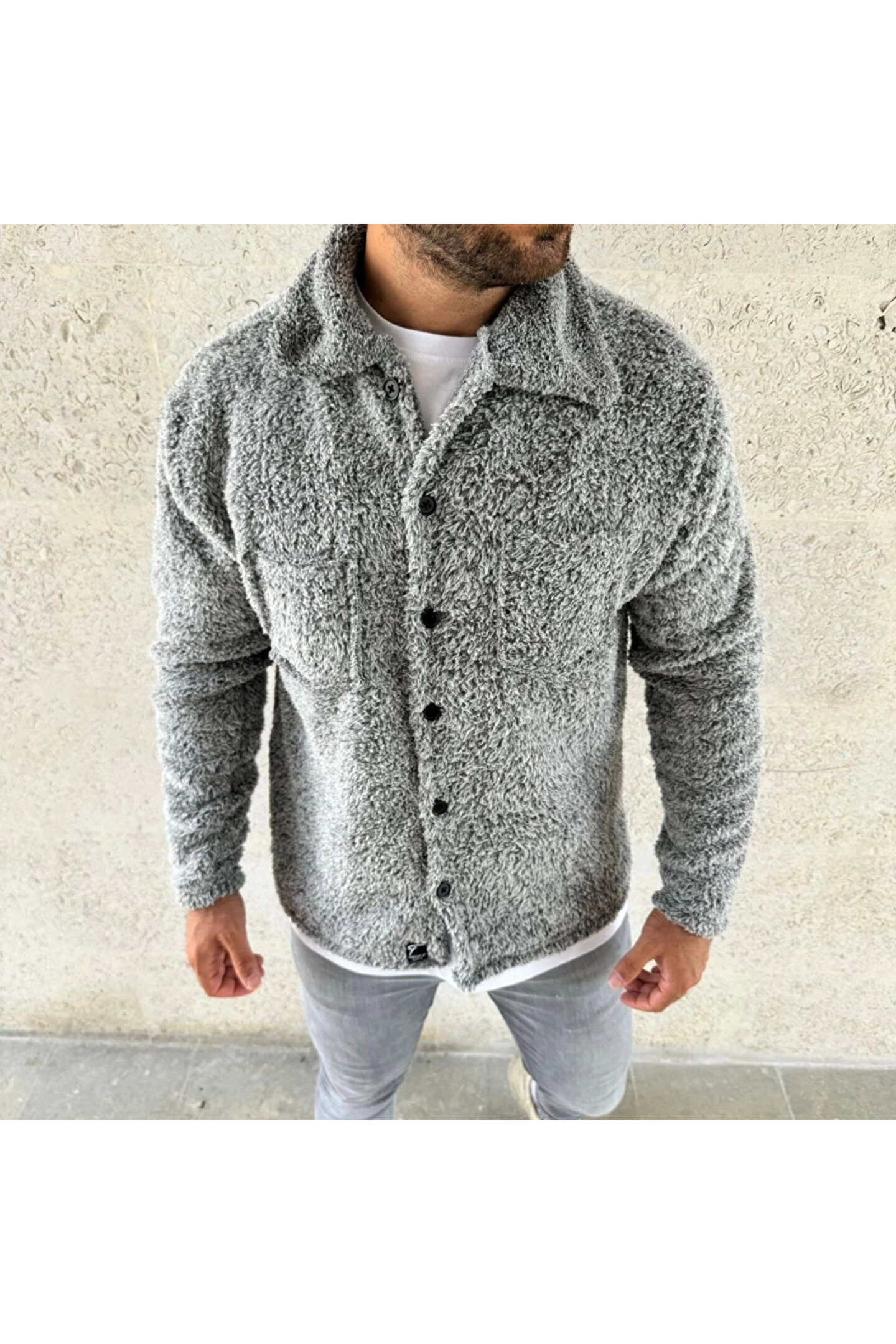 Erkek Pelüş Polar Hırka Gömlek – Yakalı, İlik Düğmeli, Göğüs Cepli, Yumuşak Dokulu Kışlık Regular Fit Rahat Günlük Model - Gri